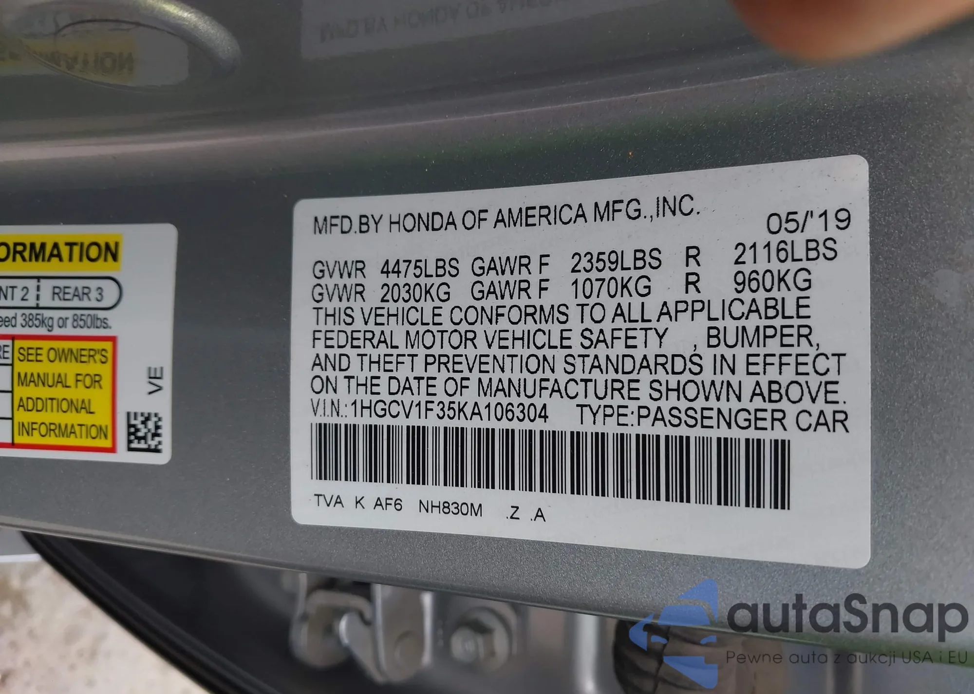 VIN: 1HGCV1F35KA106304