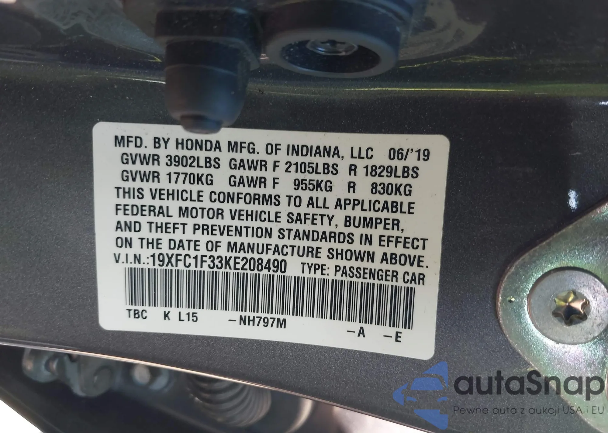VIN: 19XFC1F33KE208490