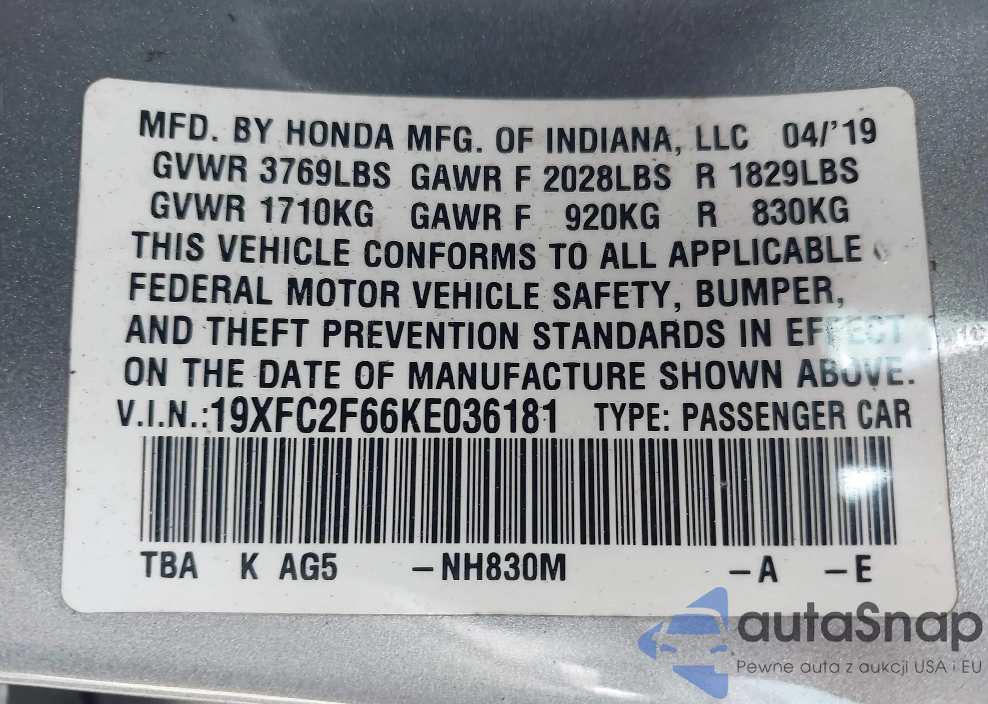 VIN: 19XFC2F66KE036181
