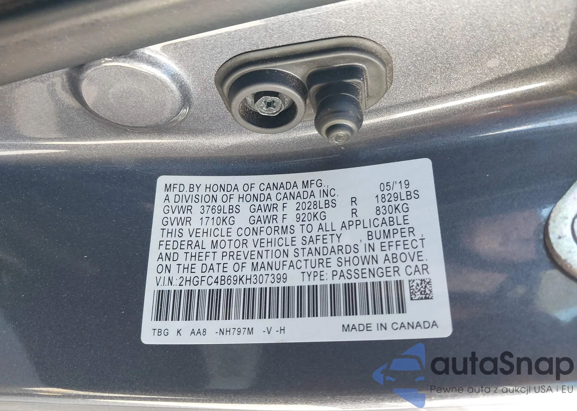 Samochód Honda Civic 2019 (VIN 2HGFC4B69KH307399) nie był wcześniej licytowany. Dokumenty są czyste, przebieg odpowiada lub jest niższy niż średnia rynku. Sprzedaje go firma ubezpieczeniowa – polecamy zakup. Dostawa do portu zajmie ok. 6–8 tygodni.