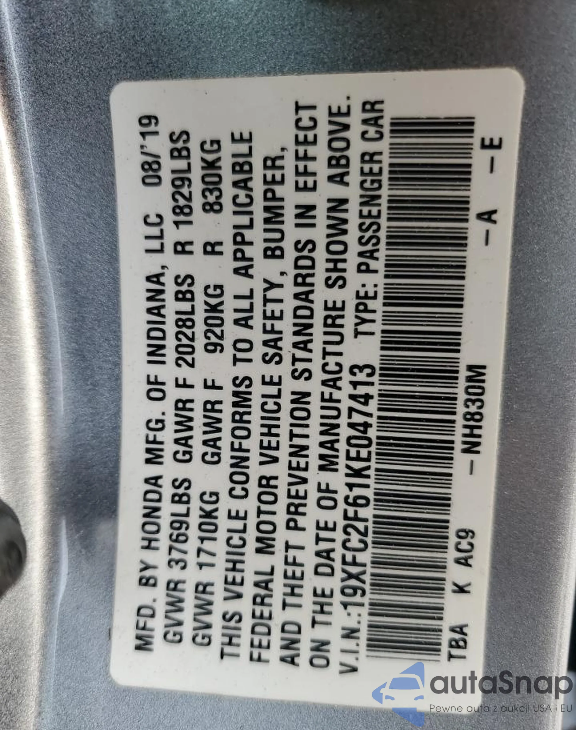 VIN: 19XFC2F61KE047413