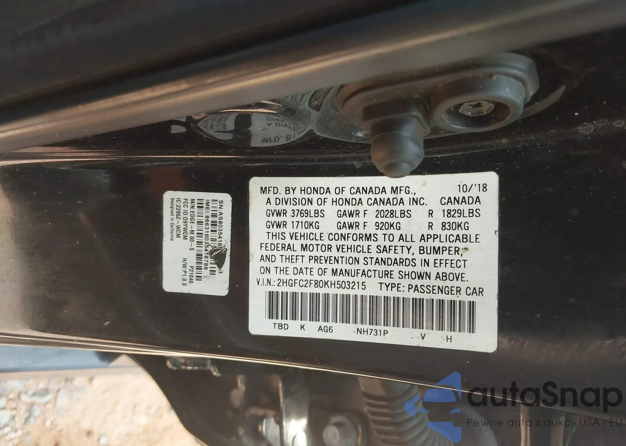 VIN: 2HGFC2F80KH503215