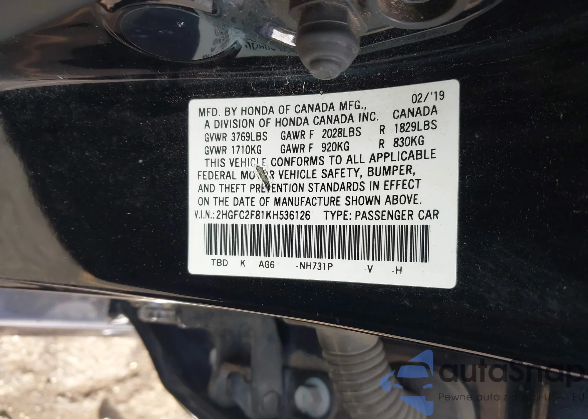 VIN: 2HGFC2F81KH536126