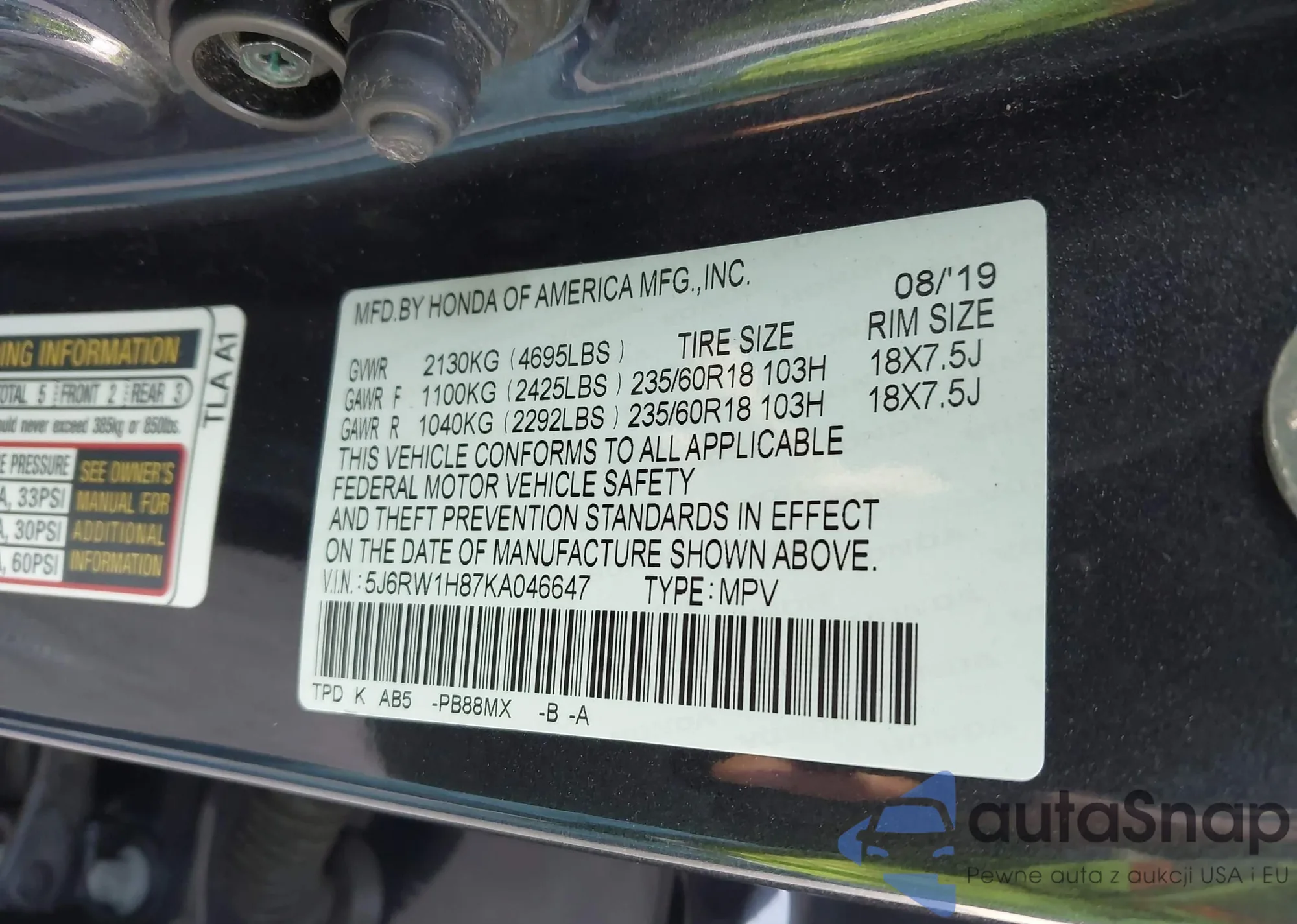 VIN: 5J6RW1H87KA046647