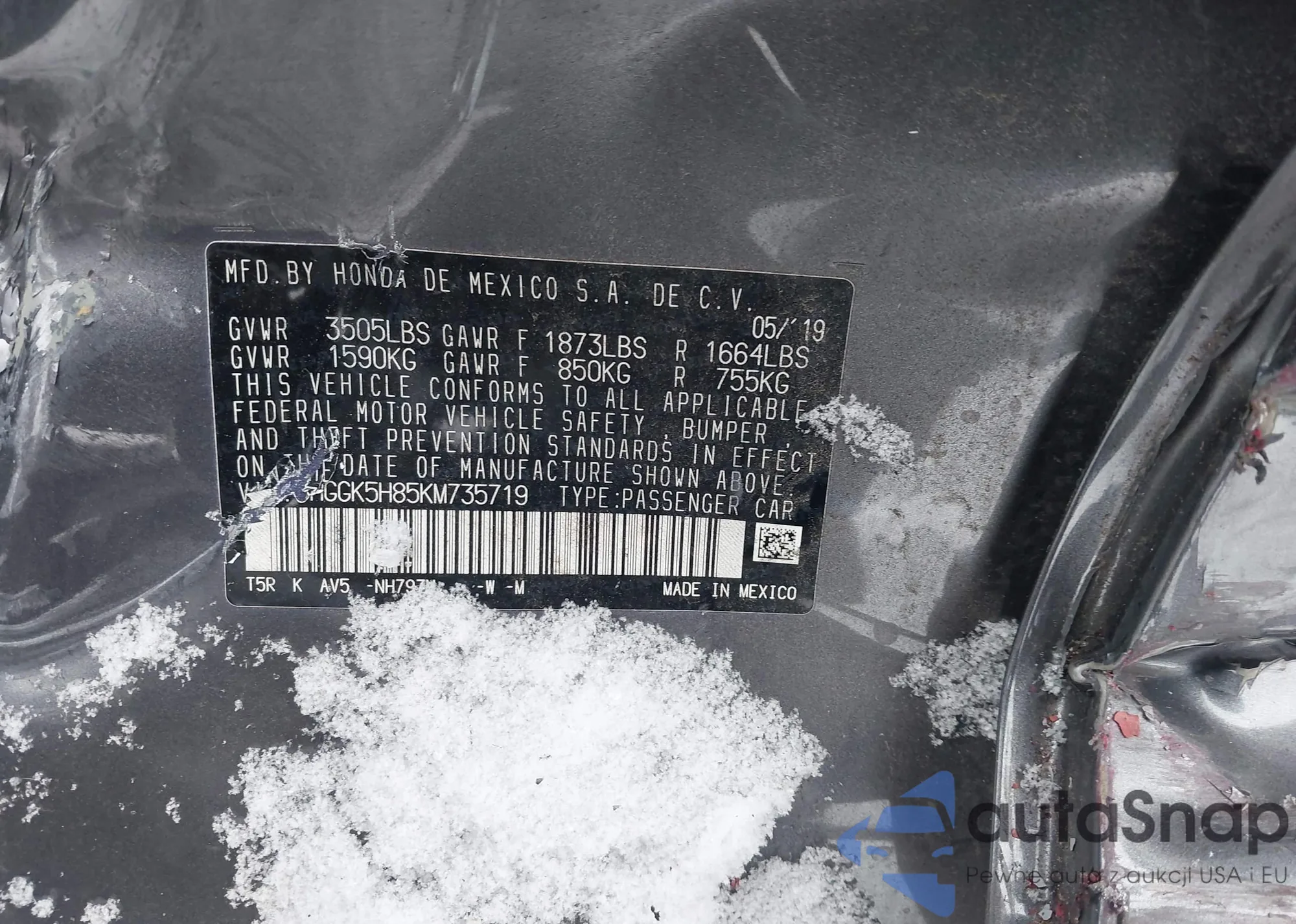 VIN: 3HGGK5H85KM735719