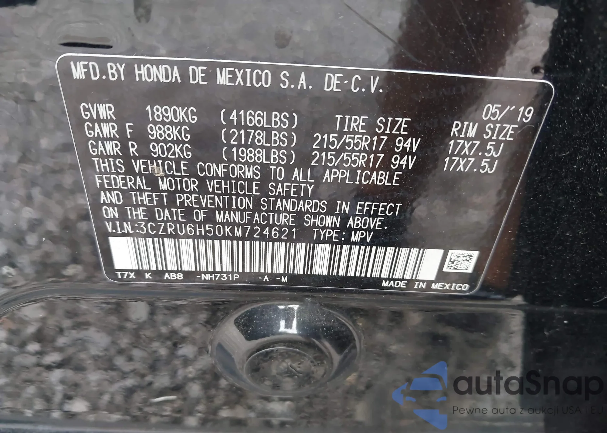 Honda HR-V 2019 – Historia pojazdu (sprzedany na IAAI)