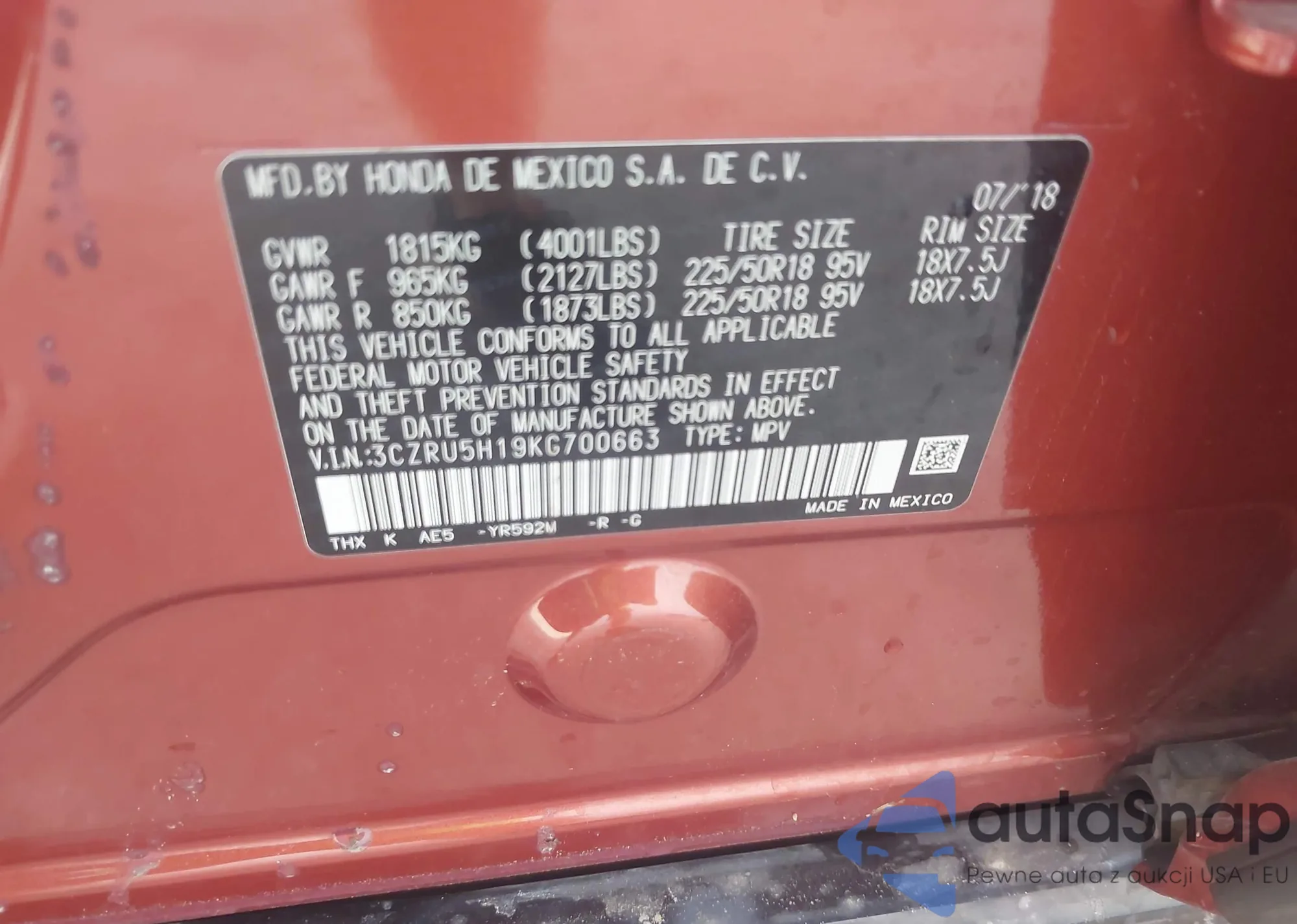 VIN: 3CZRU5H19KG700663