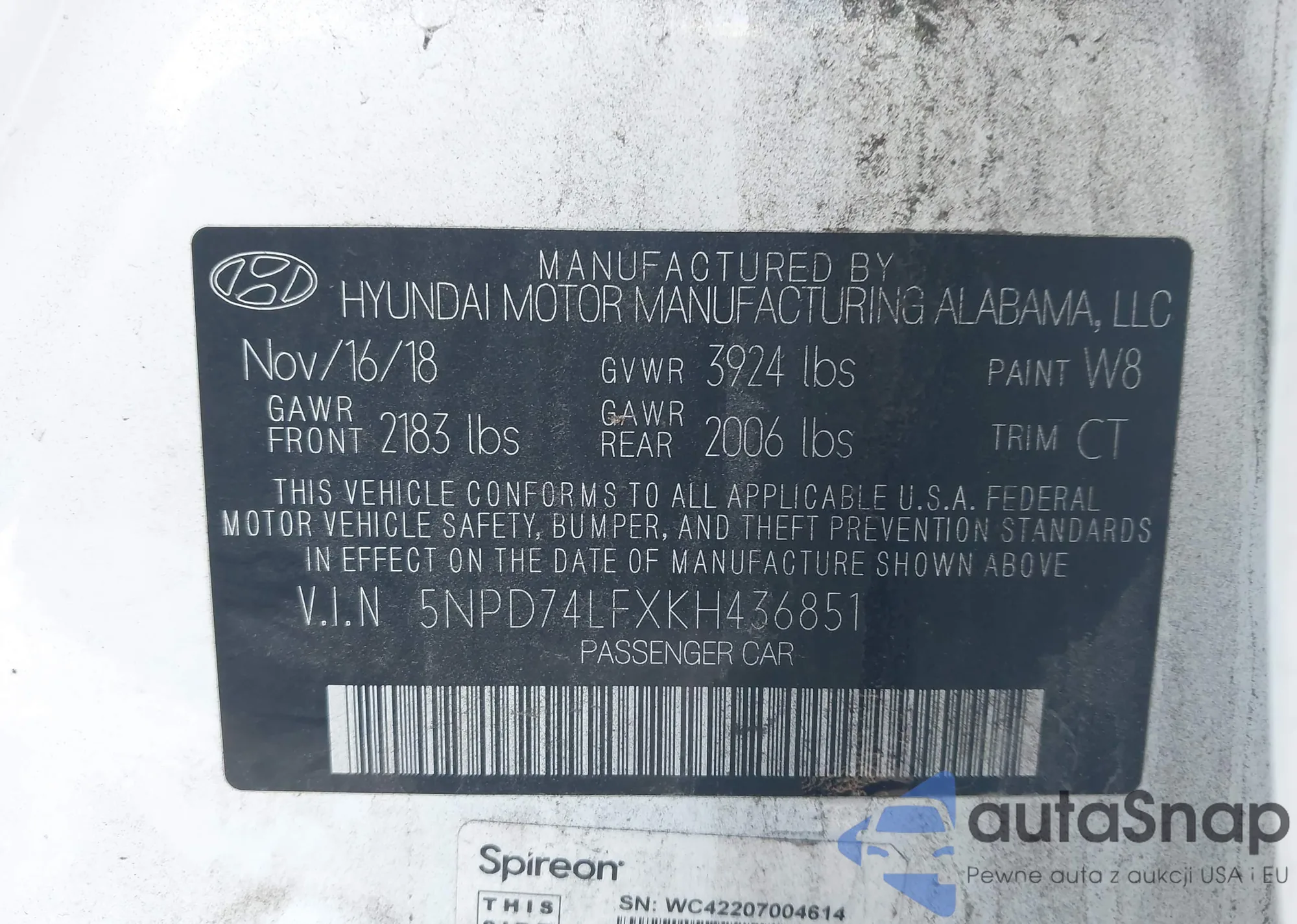 Samochód Hyundai Elantra 2019 (VIN 5NPD74LFXKH436851) nie był wcześniej licytowany. Dokumenty są czyste, przebieg odpowiada lub jest niższy niż średnia rynku. Sprzedaje go firma ubezpieczeniowa – polecamy zakup. Dostawa do portu zajmie ok. 6–8 tygodni.