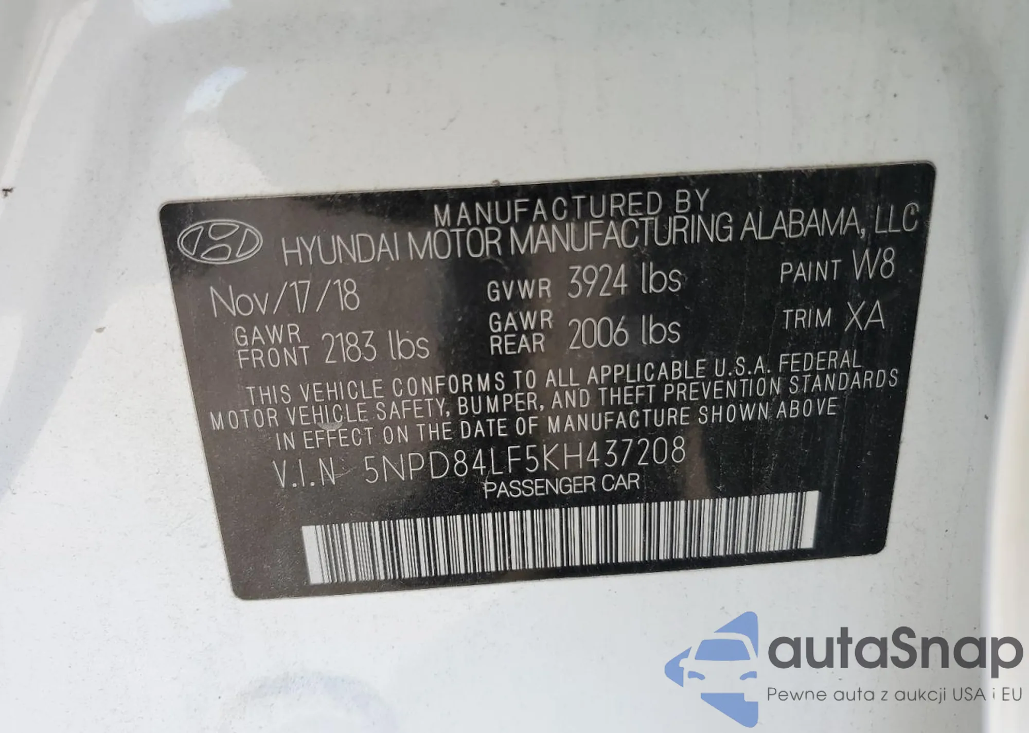 VIN: 5NPD84LF5KH437208
