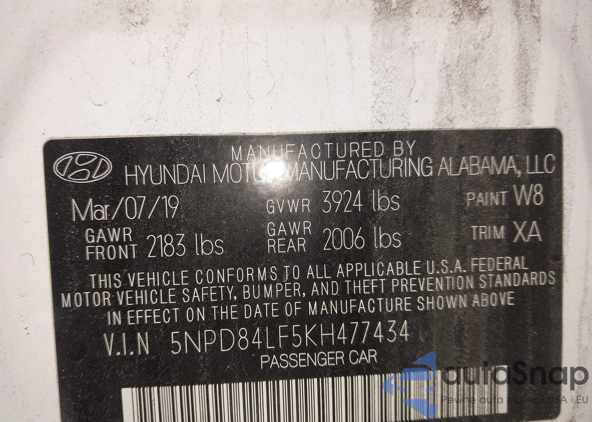 • VIN: 5NPD84LF5KH477434