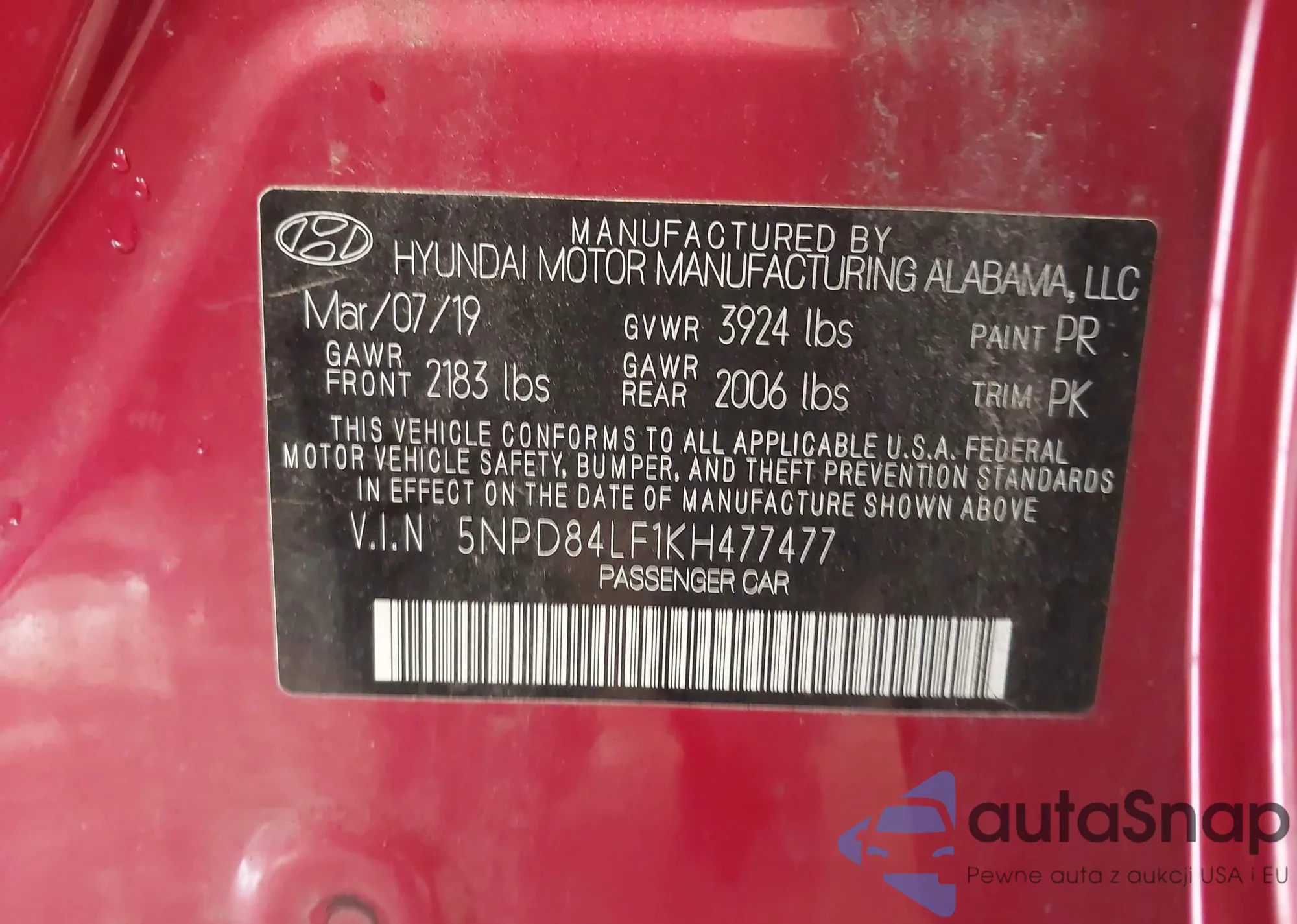 • VIN: 5NPD84LF1KH477477