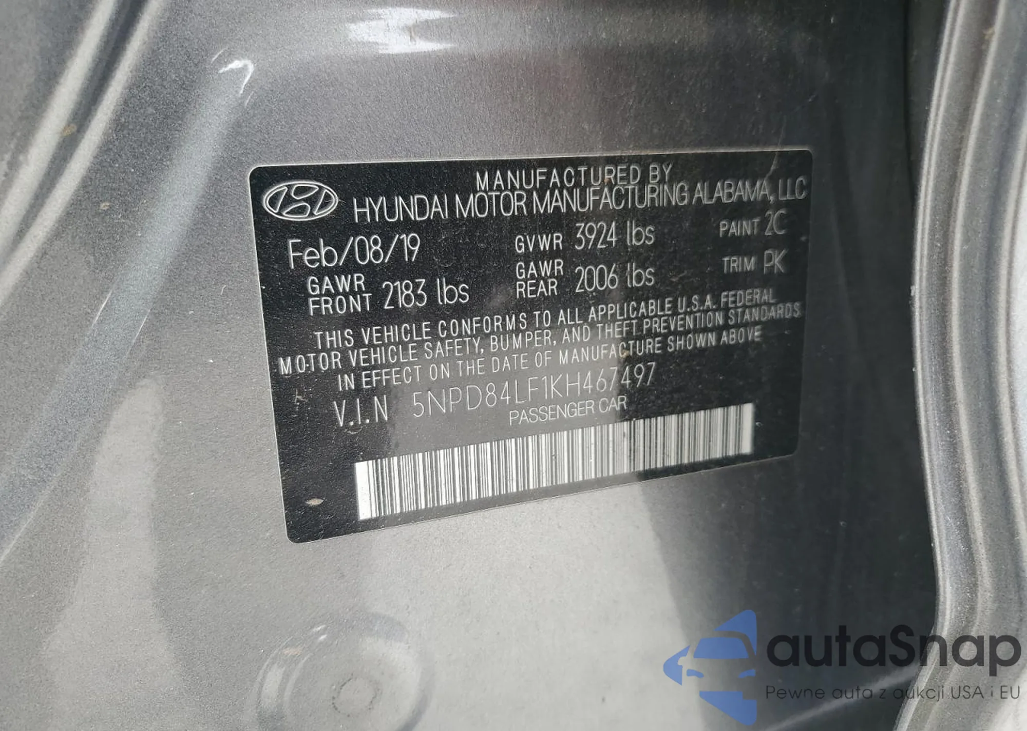 VIN: 5NPD84LF1KH467497