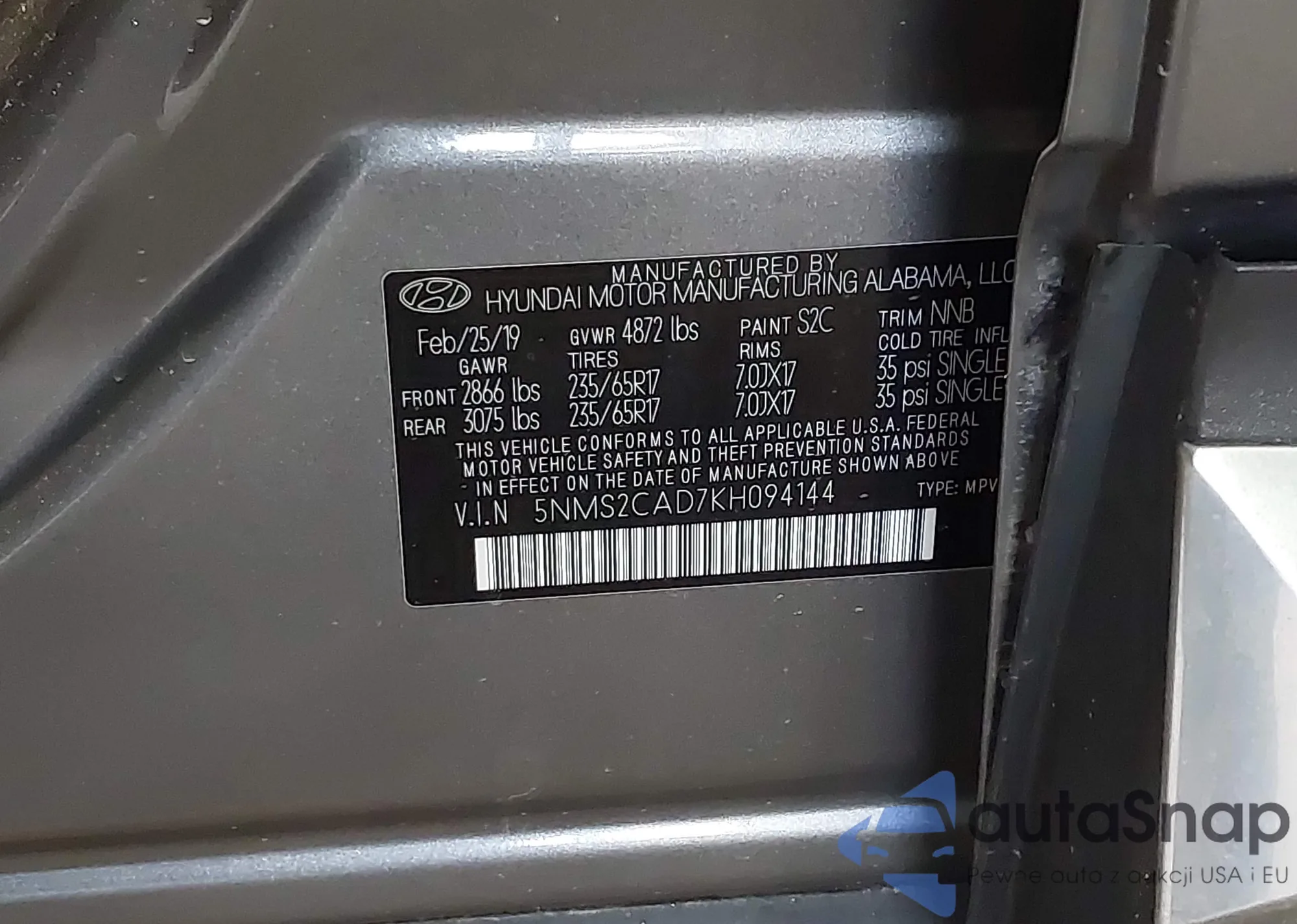 VIN: 5NMS2CAD7KH094144