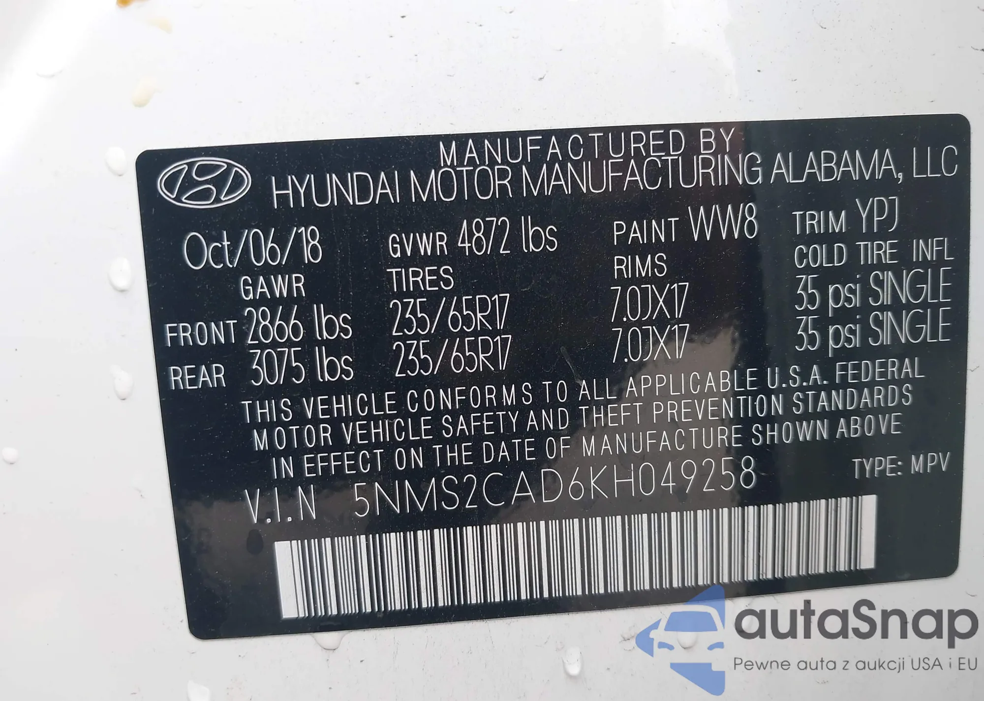 VIN: 5NMS2CAD6KH049258
