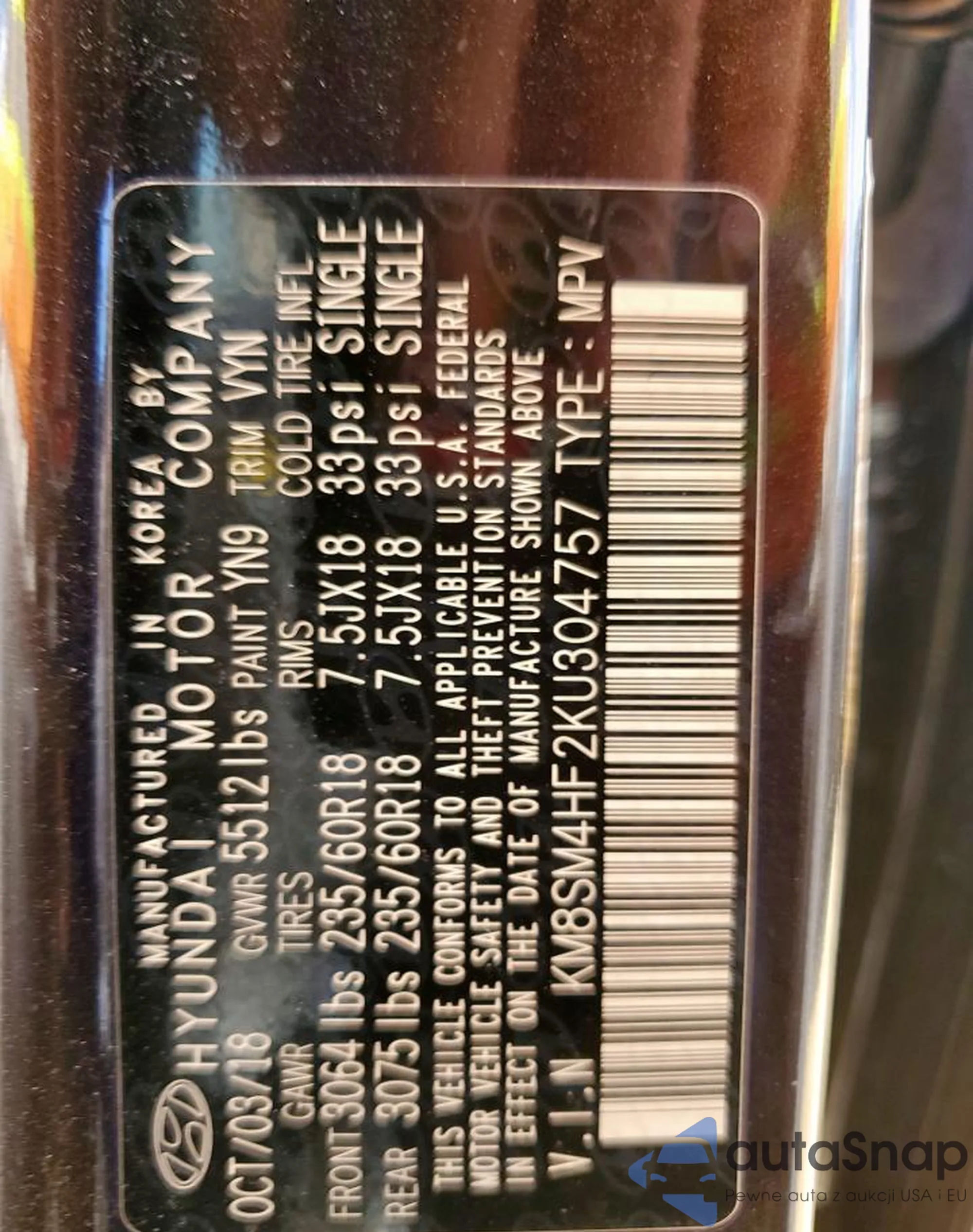 VIN: KM8SM4HF2KU304757