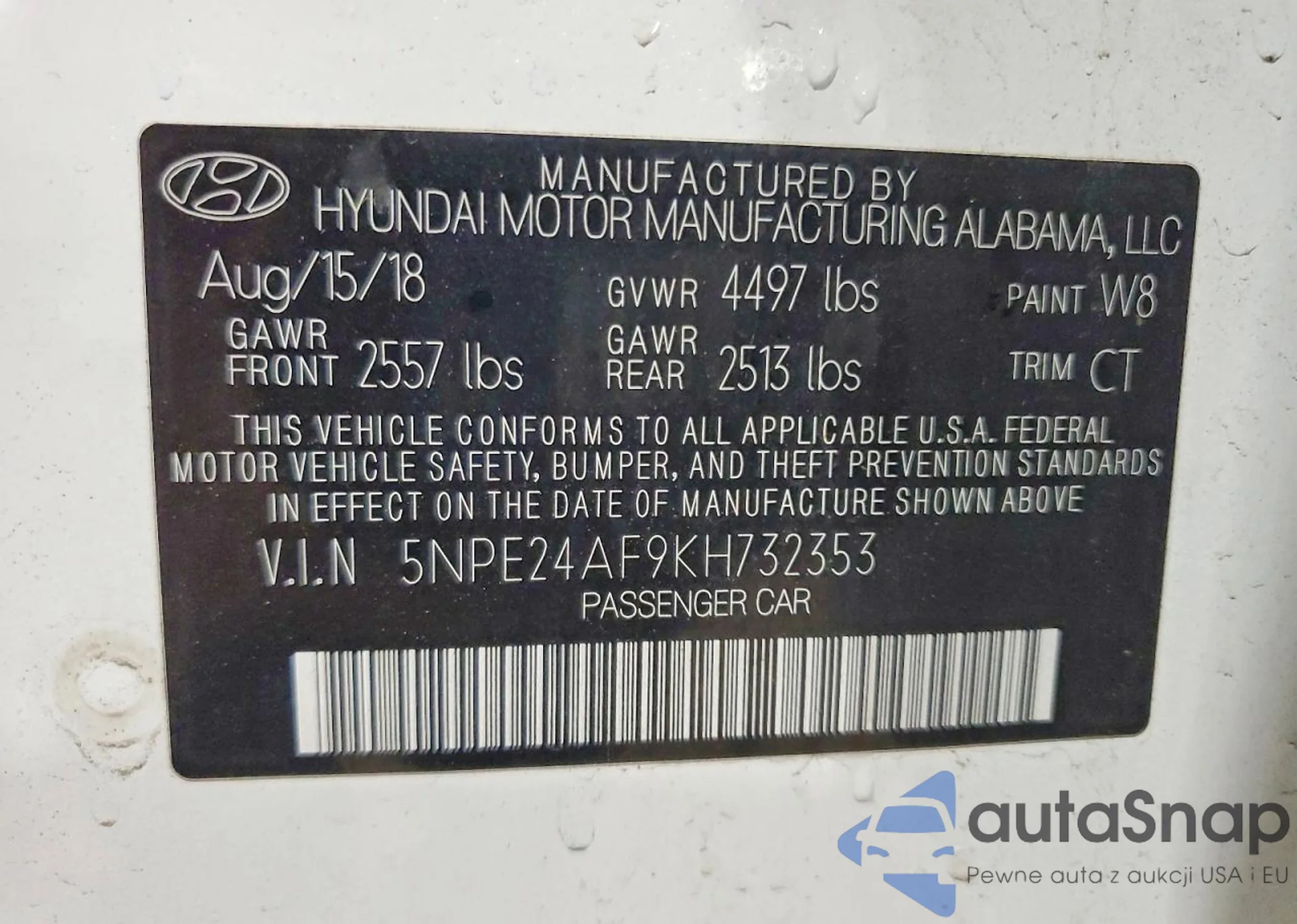 VIN: 5NPE24AF9KH732353