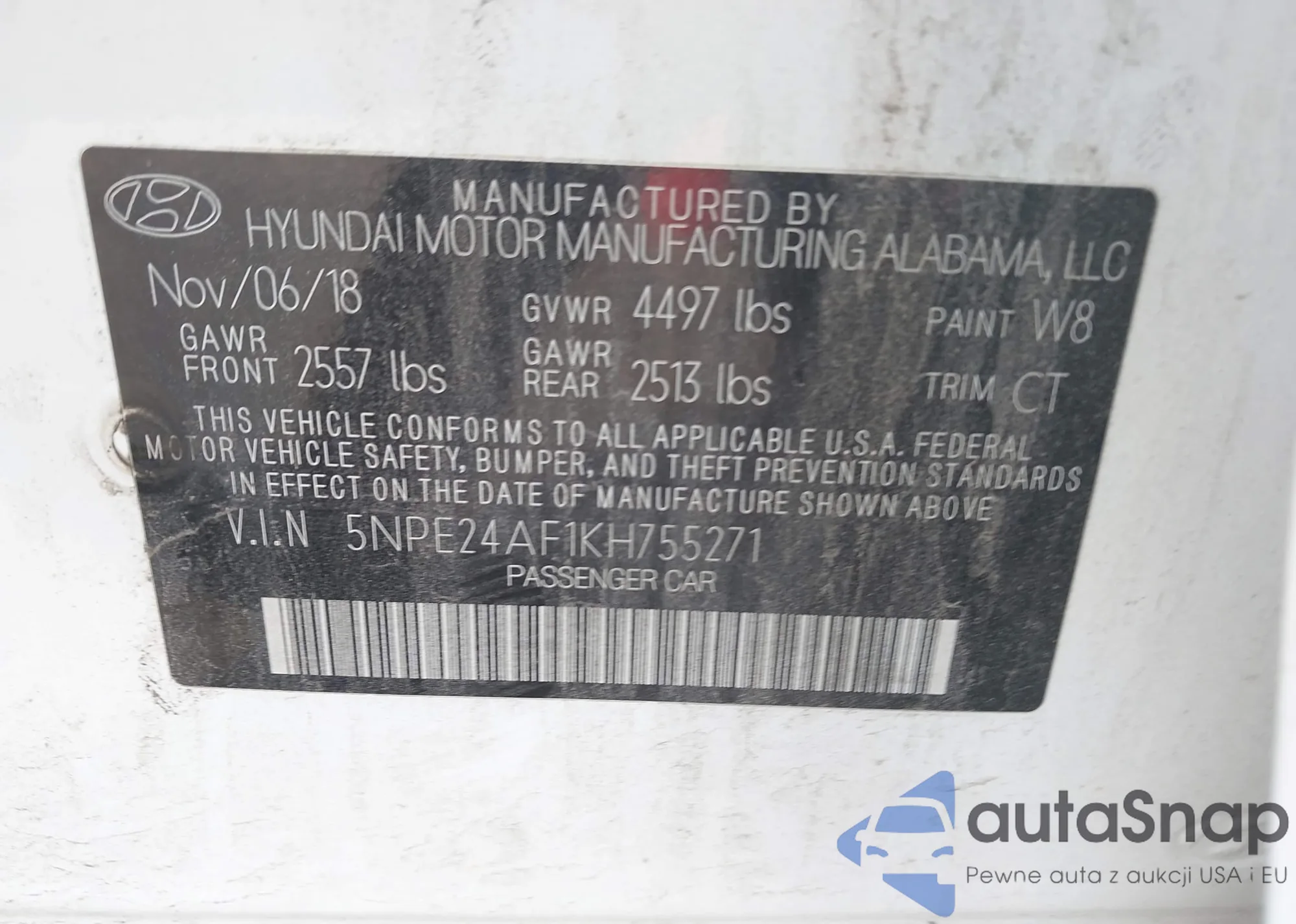 VIN: 5NPE24AF1KH755271