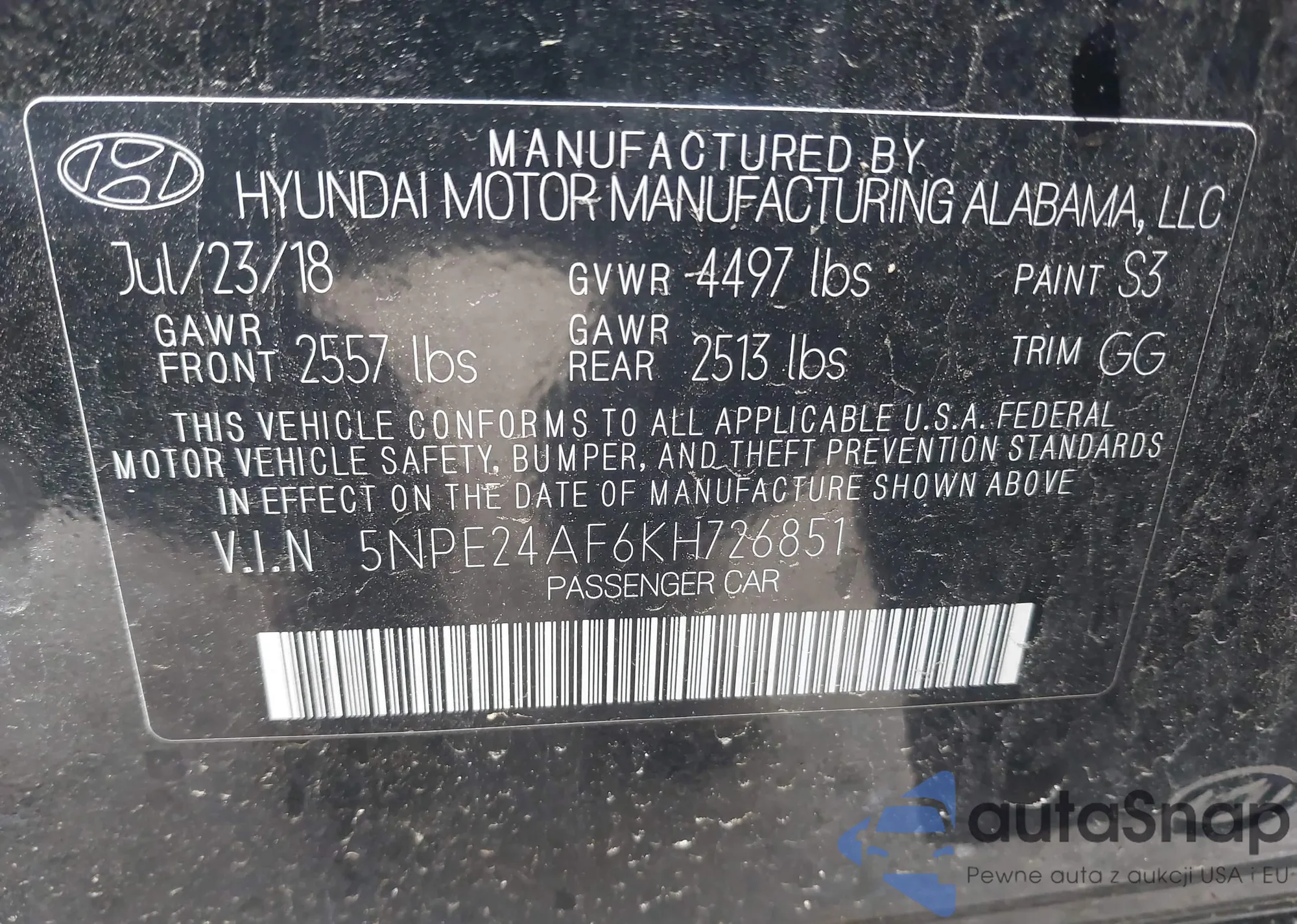 VIN: 5NPE24AF6KH726851