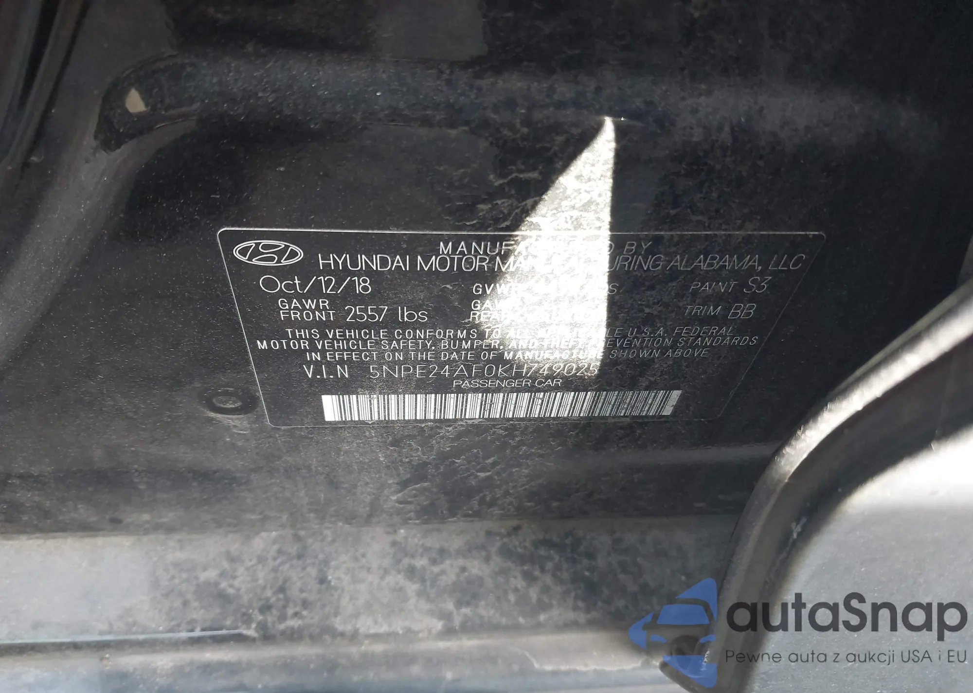 VIN: 5NPE24AF0KH749025