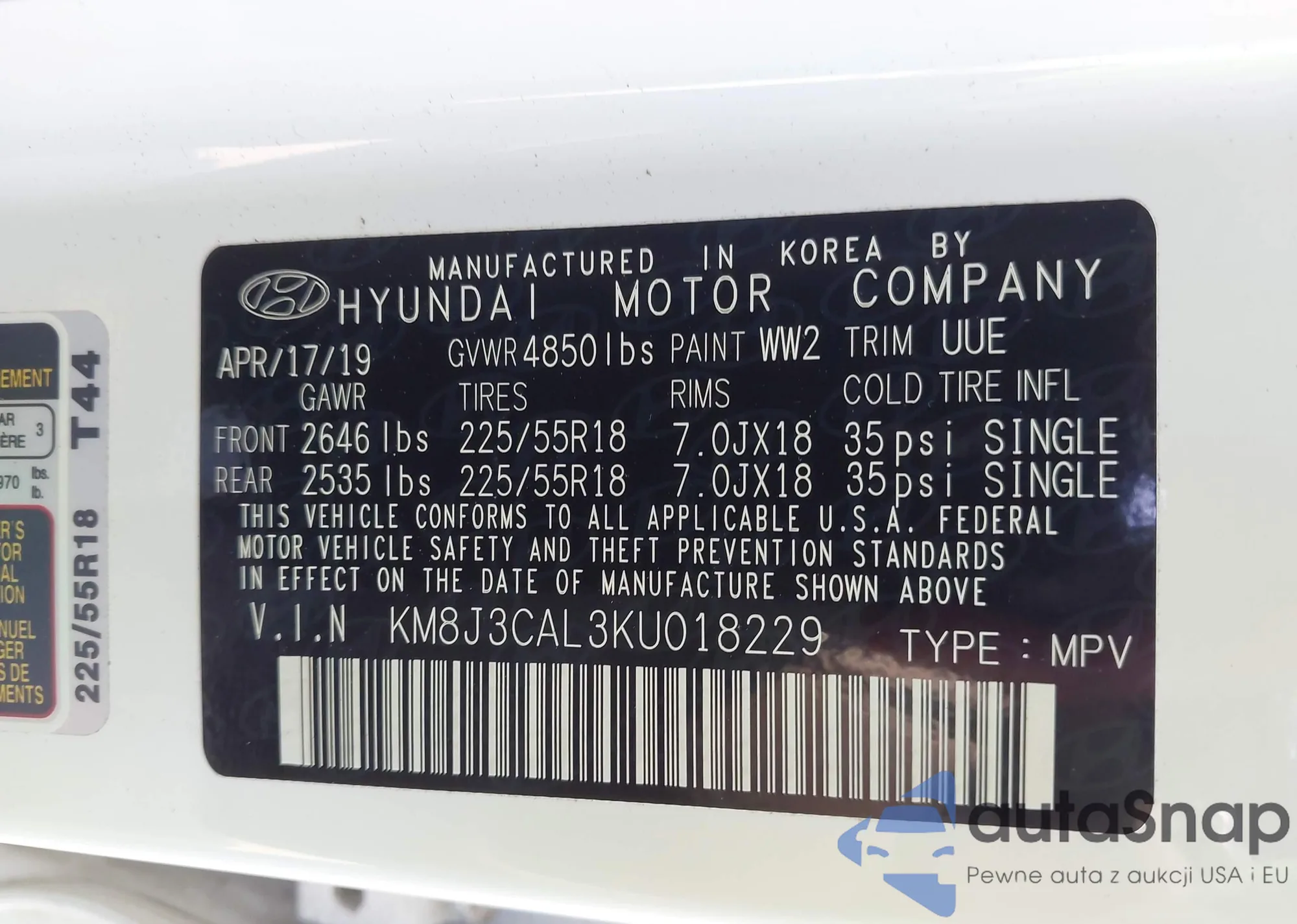 VIN: KM8J3CAL3KU018229