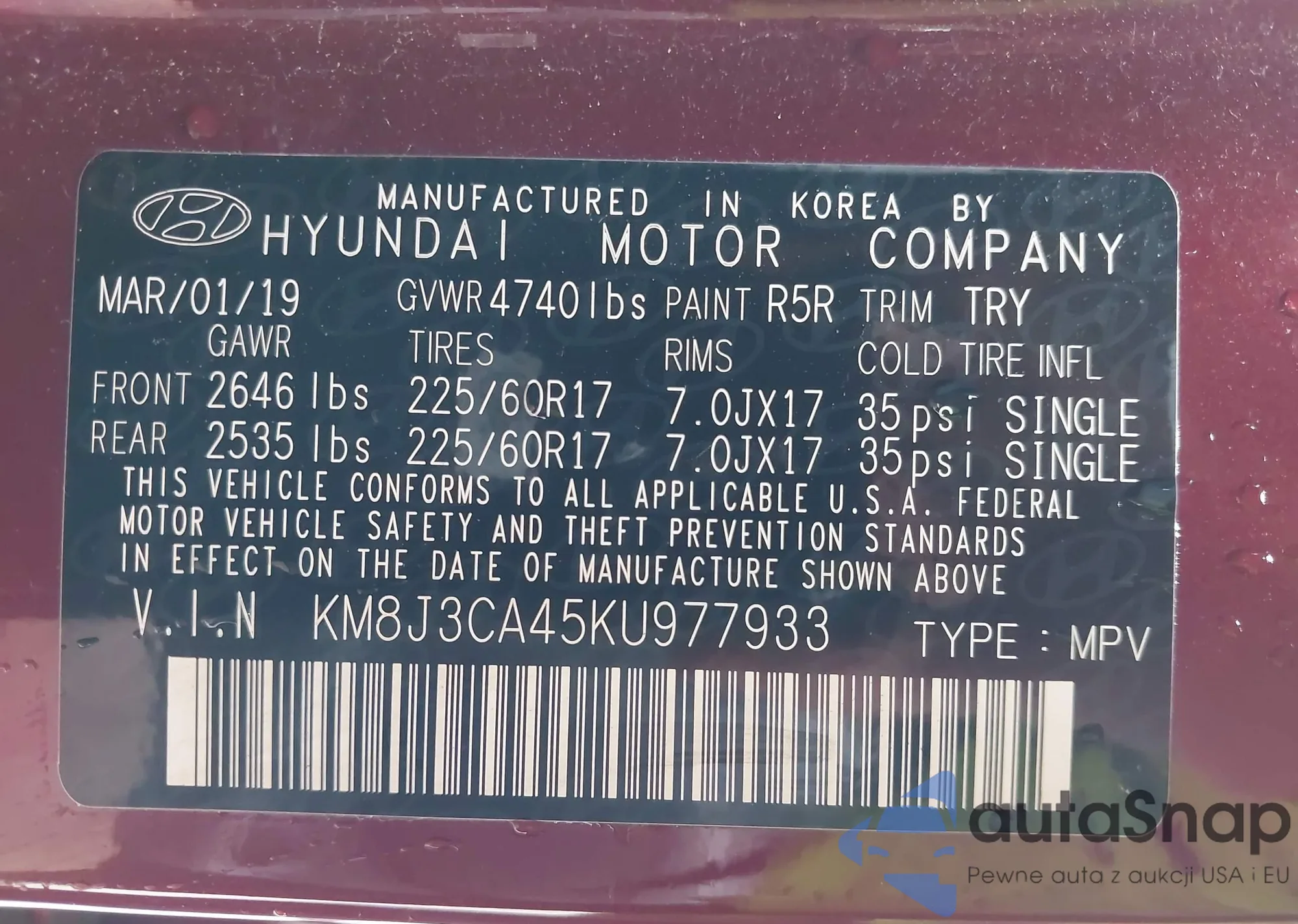 VIN: KM8J3CA45KU977933