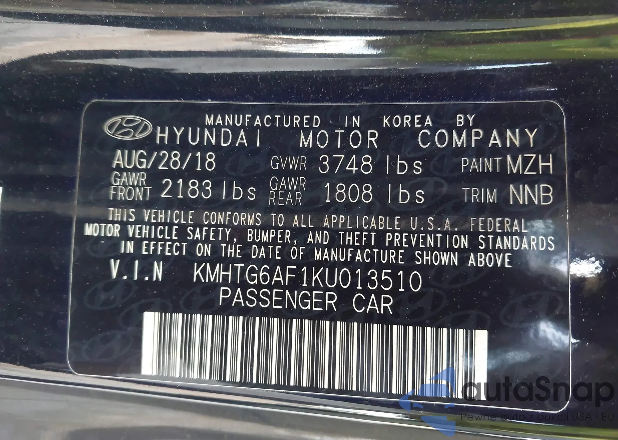 VIN: KMHTG6AF1KU013510