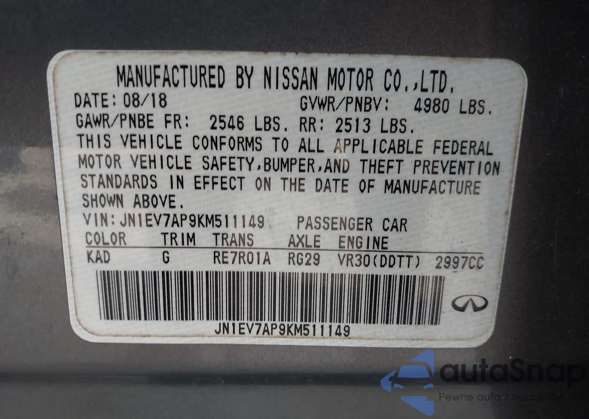 VIN: JN1EV7AP9KM511149