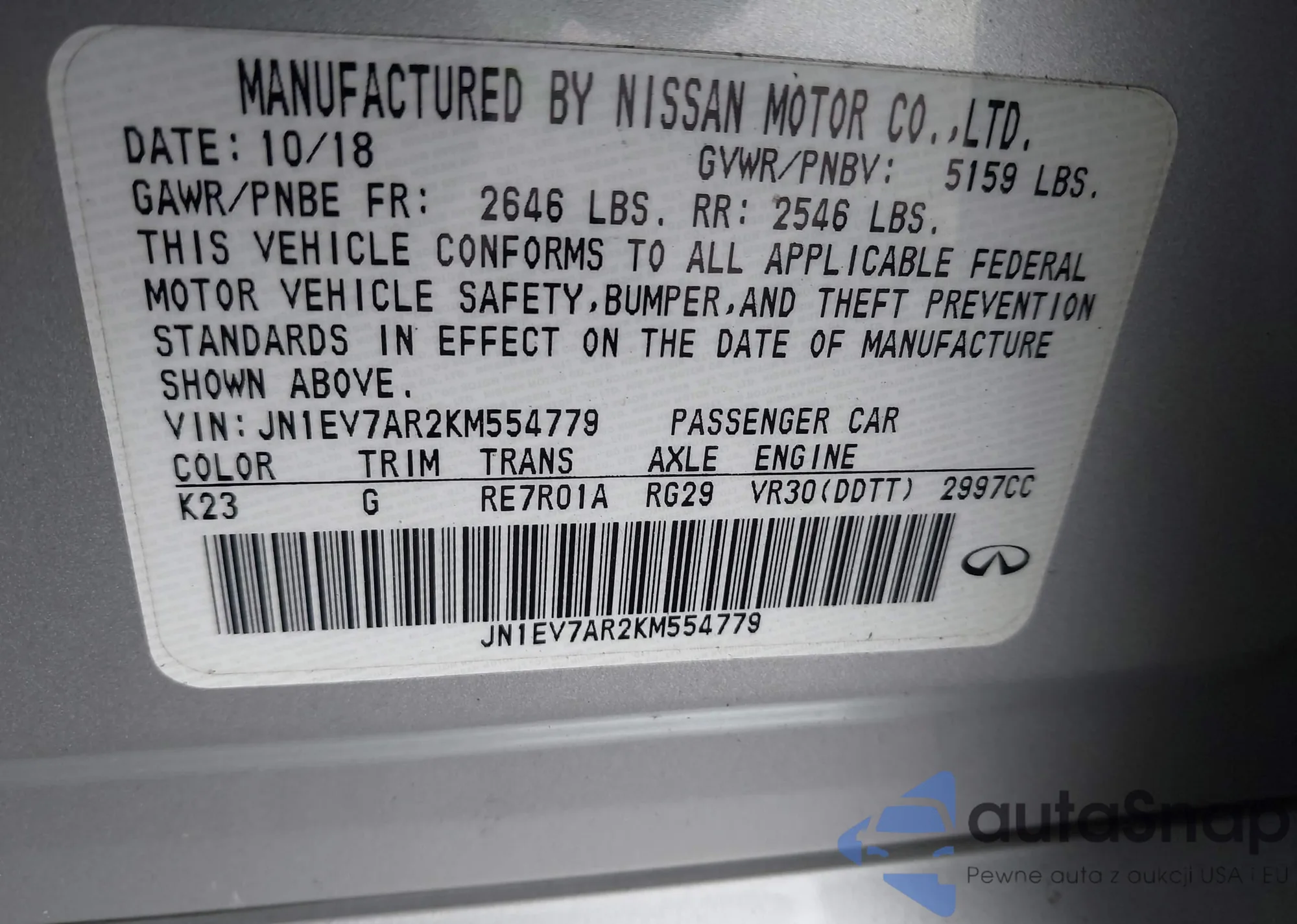 VIN: JN1EV7AR2KM554779