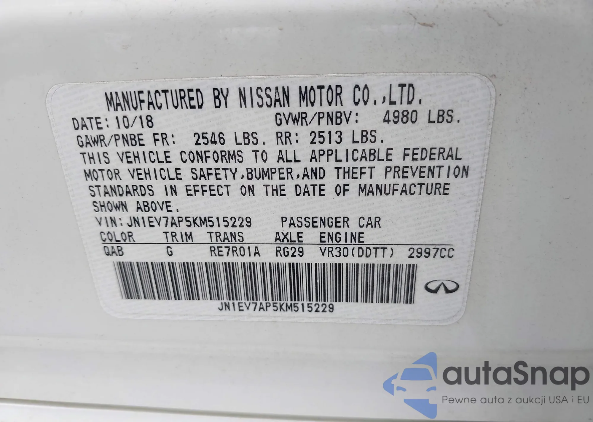 VIN: JN1EV7AP5KM515229