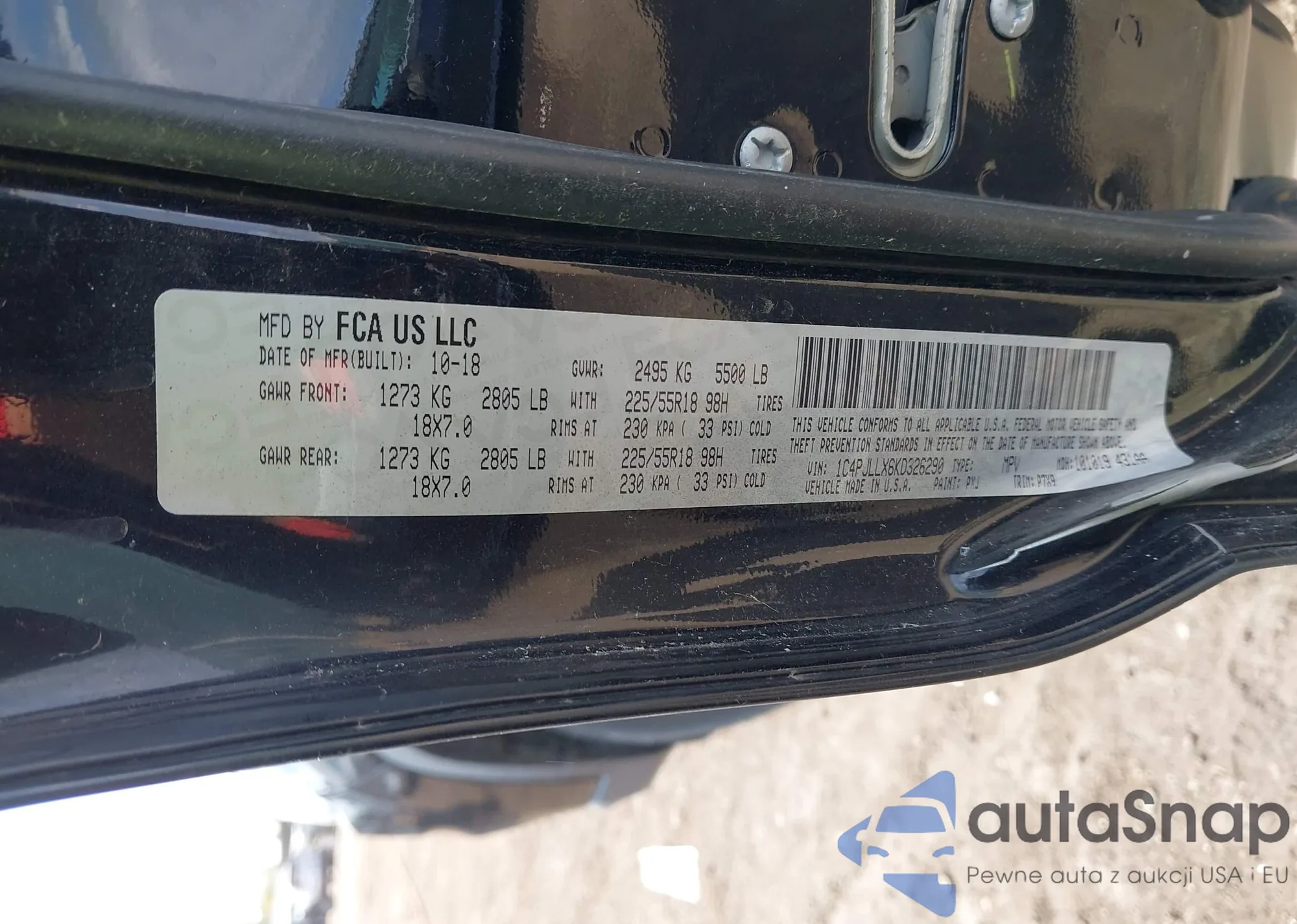 Samochód Jeep Cherokee 2019 (VIN 1C4PJLLX6KD326290) ma dokumenty uniemożliwiające rejestrację. Mogą pojawić się trudności przy eksporcie i rejestracji. Skontaktuj się z ekspertami AutaSnap w celu znalezienia alternatywy.