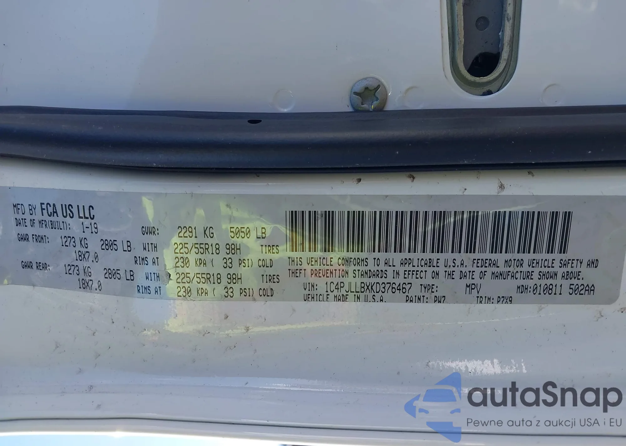 VIN: 1C4PJLLBXKD376467