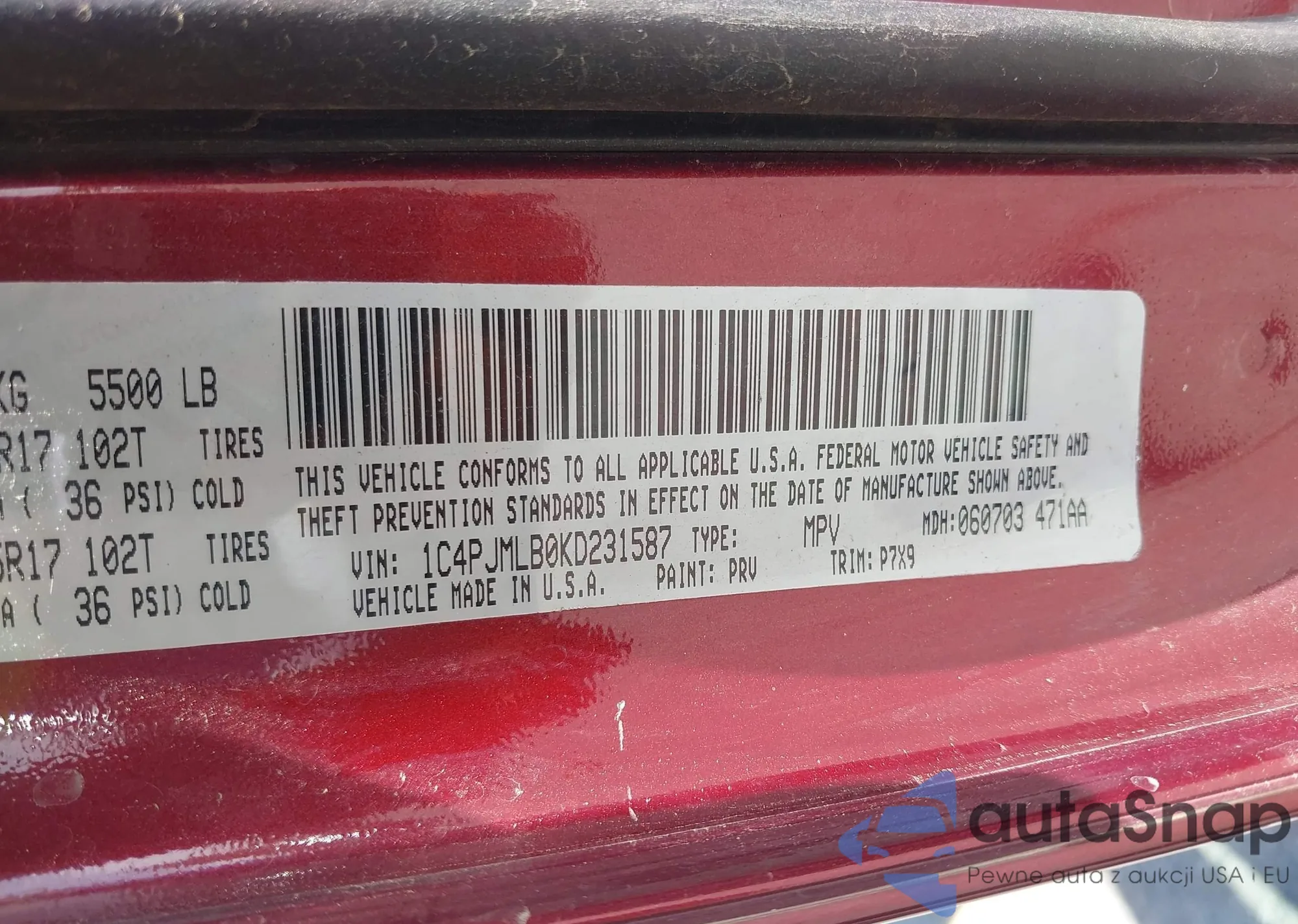 VIN: 1C4PJMLB0KD231587