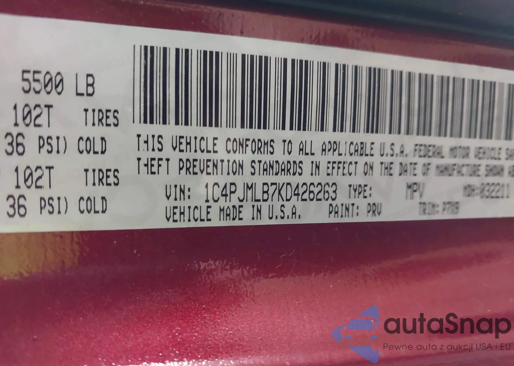 VIN: 1C4PJMLB7KD426263