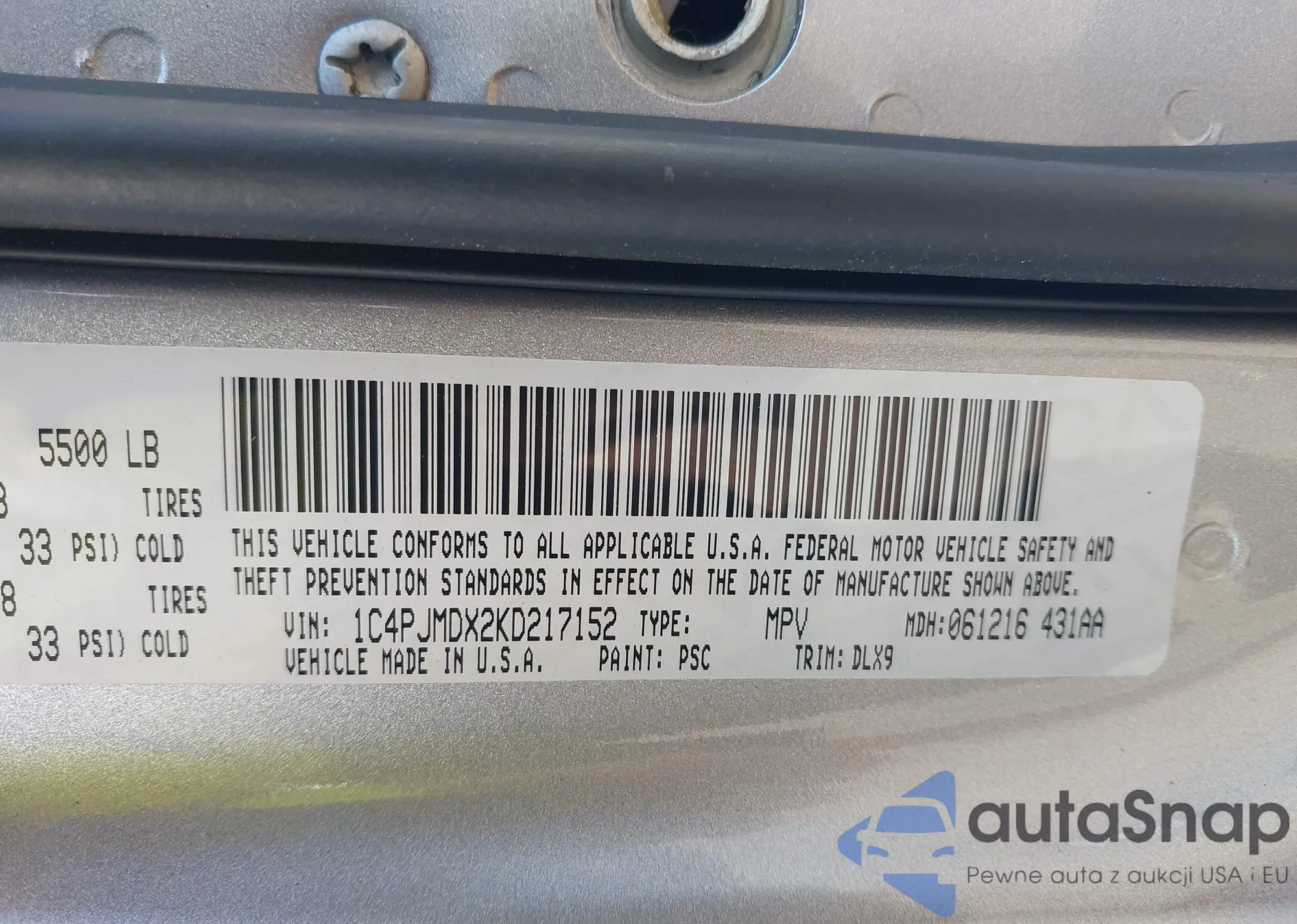 VIN: 1C4PJMDX2KD217152