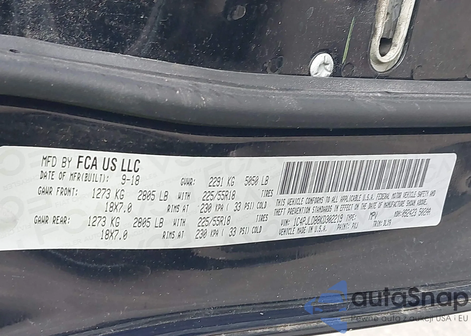 VIN: 1C4PJLDB8KD302219