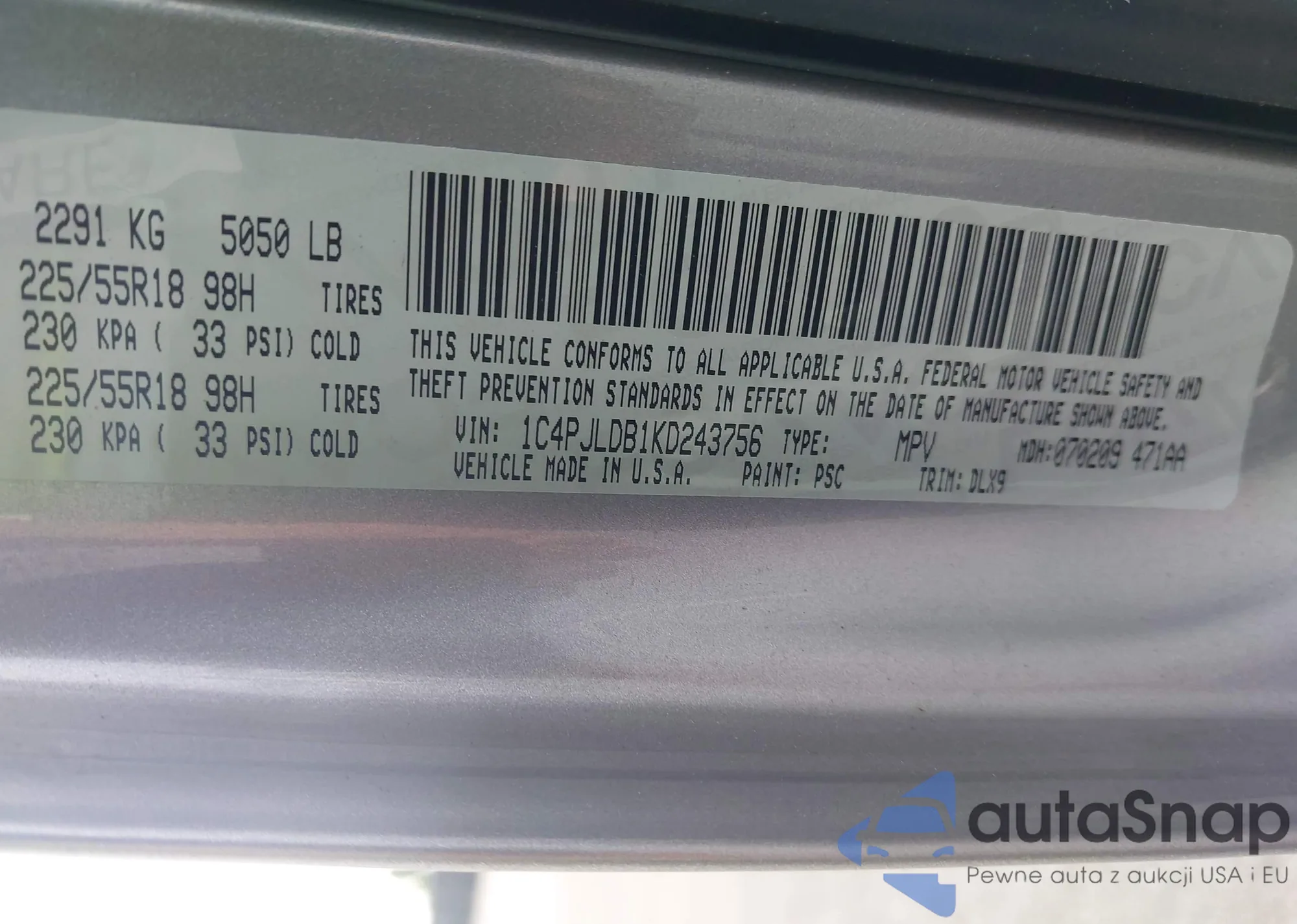 VIN: 1C4PJLDB1KD243756