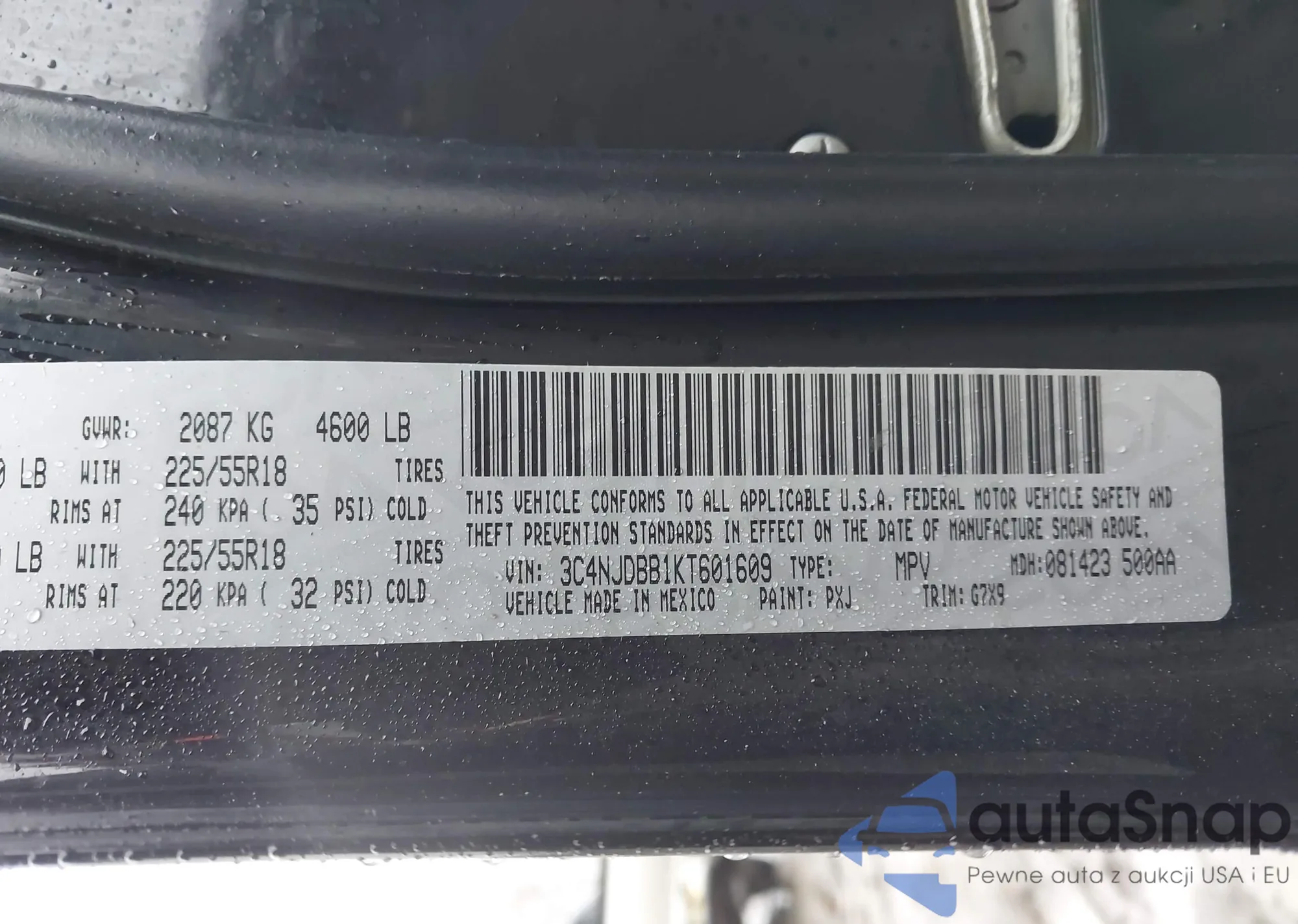 VIN: 3C4NJDBB1KT601609
