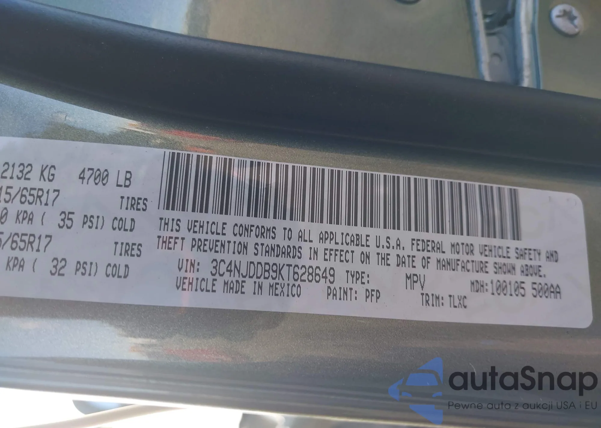 VIN: 3C4NJDDB9KT628649