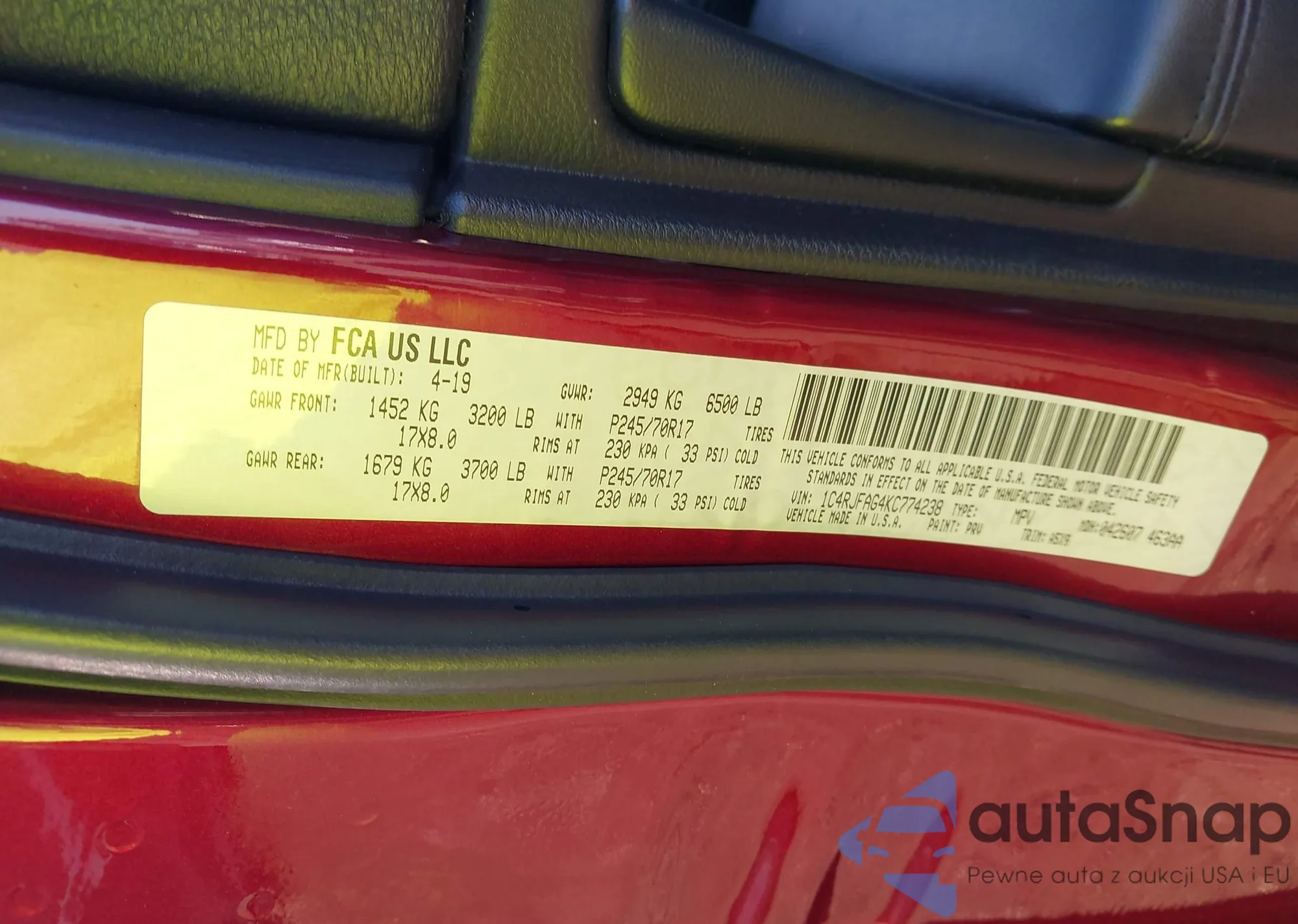 VIN: 1C4RJFAG4KC774238
