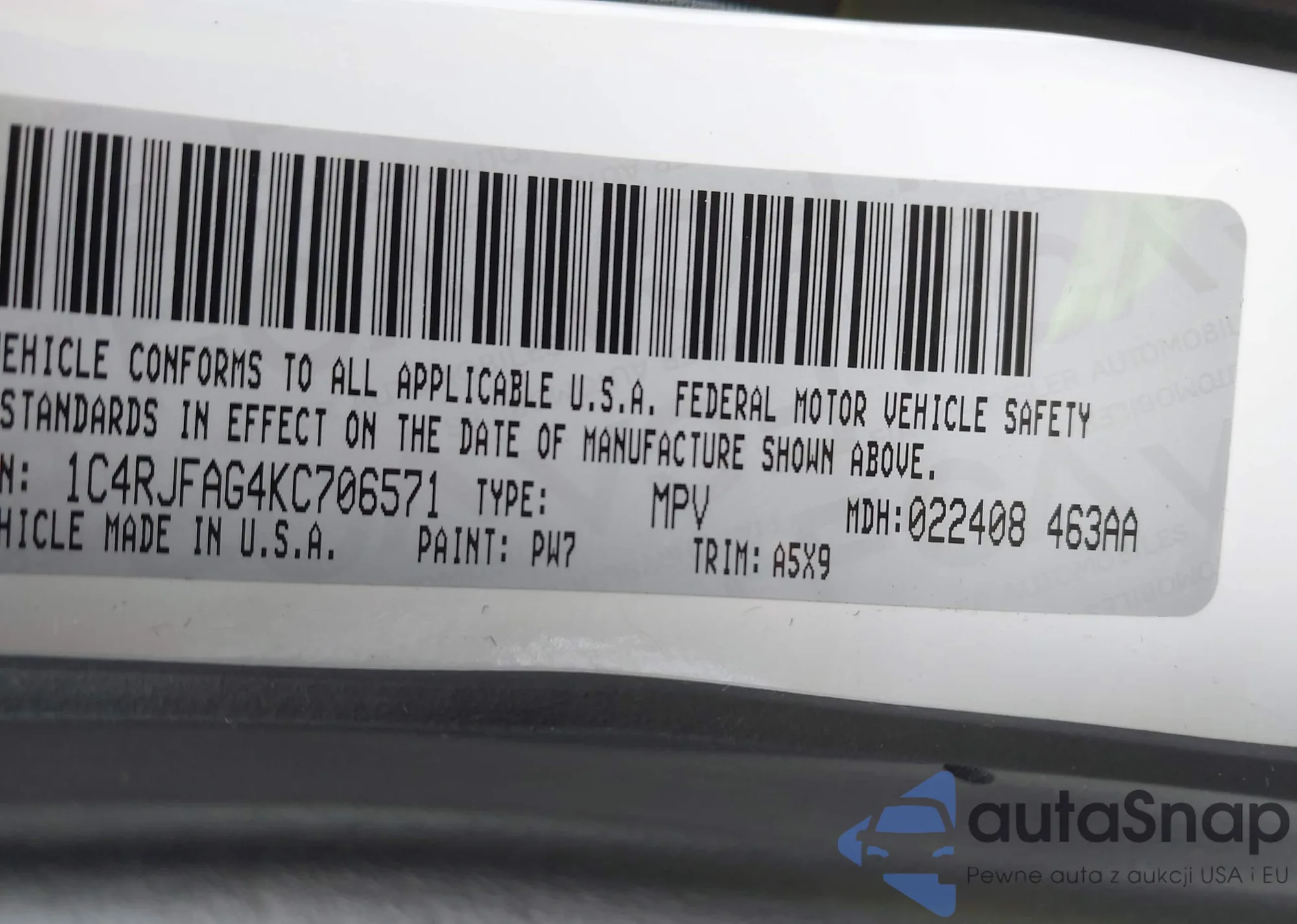 VIN: 1C4RJFAG4KC706571