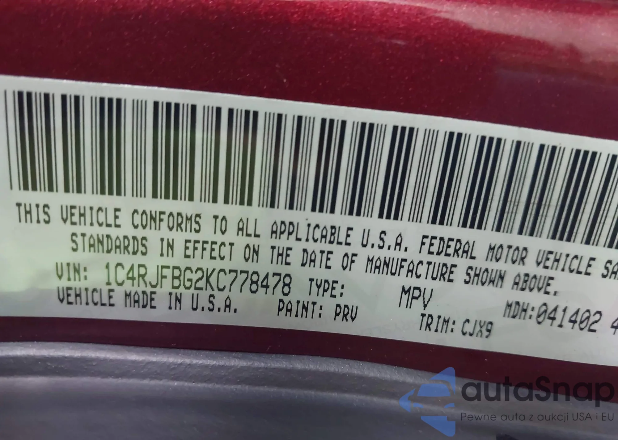 VIN: 1C4RJFBG2KC778478