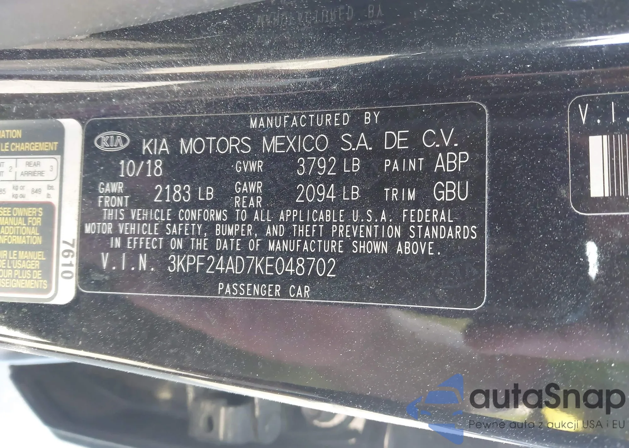 Samochód Kia Forte 2019 (VIN 3KPF24AD7KE048702) ma dokumenty uniemożliwiające rejestrację. Mogą pojawić się trudności przy eksporcie i rejestracji. Skontaktuj się z ekspertami AutaSnap w celu znalezienia alternatywy.