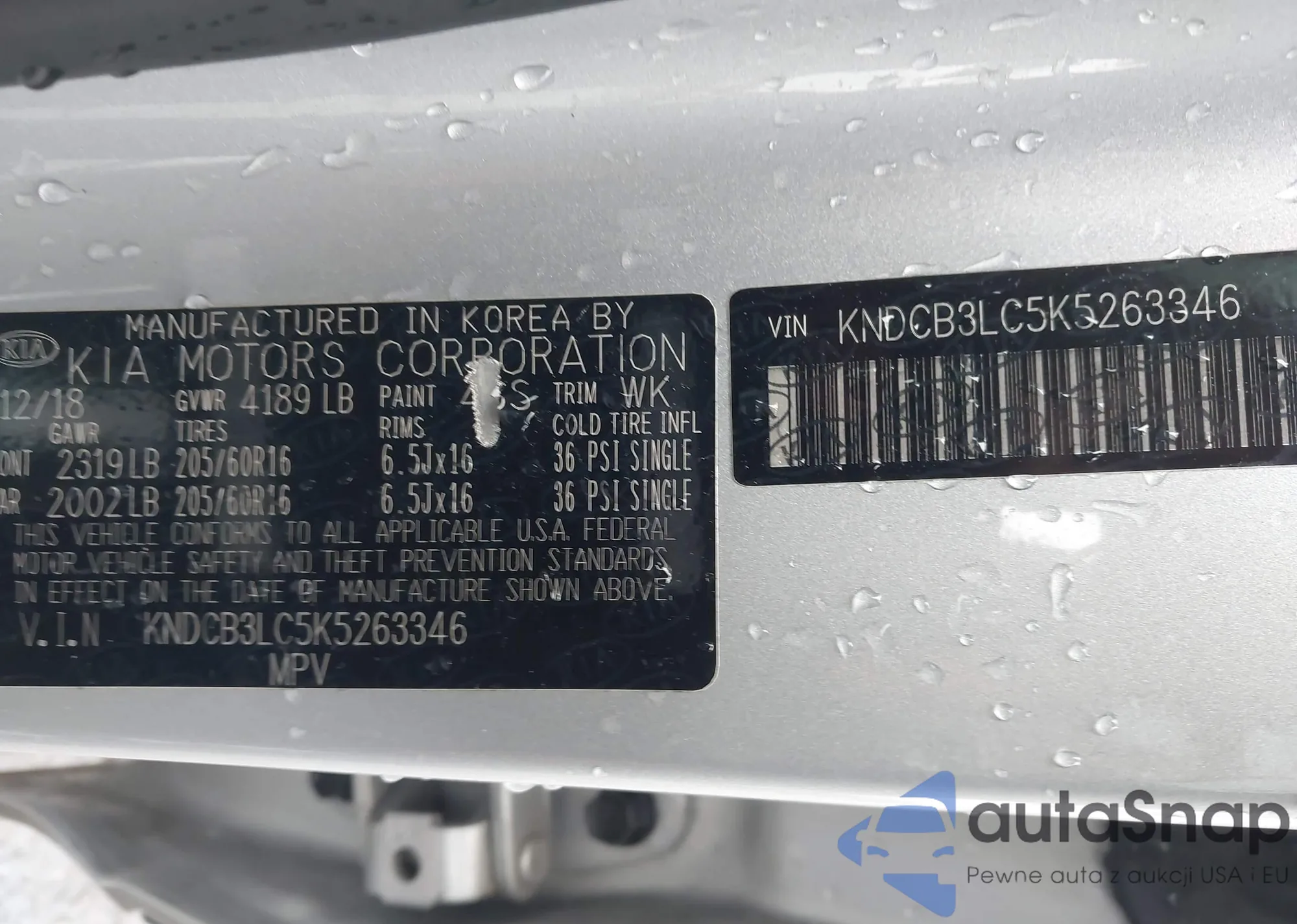 • VIN: KNDCB3LC5K5263346