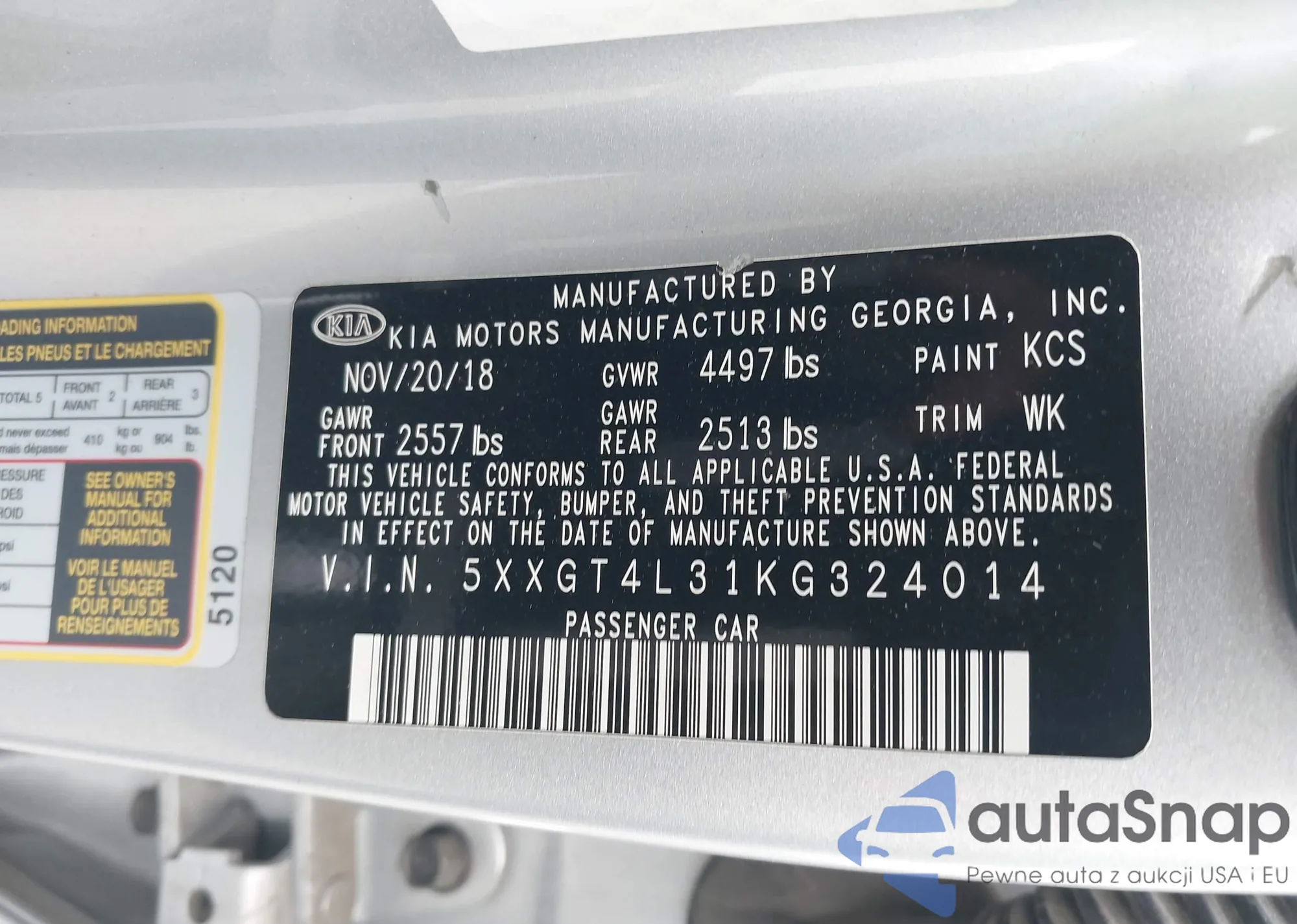 VIN: 5XXGT4L31KG324014