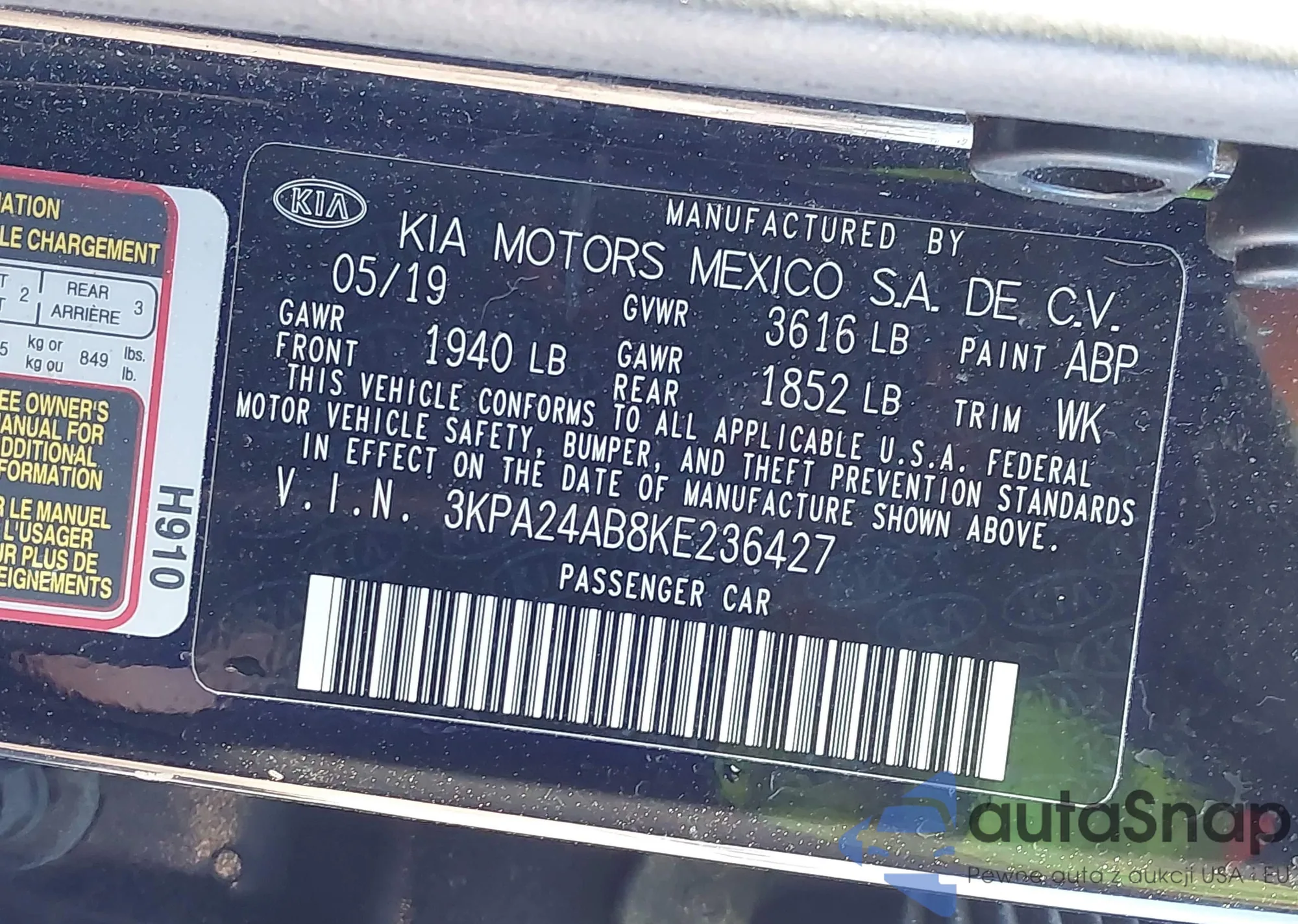 VIN: 3KPA24AB8KE236427