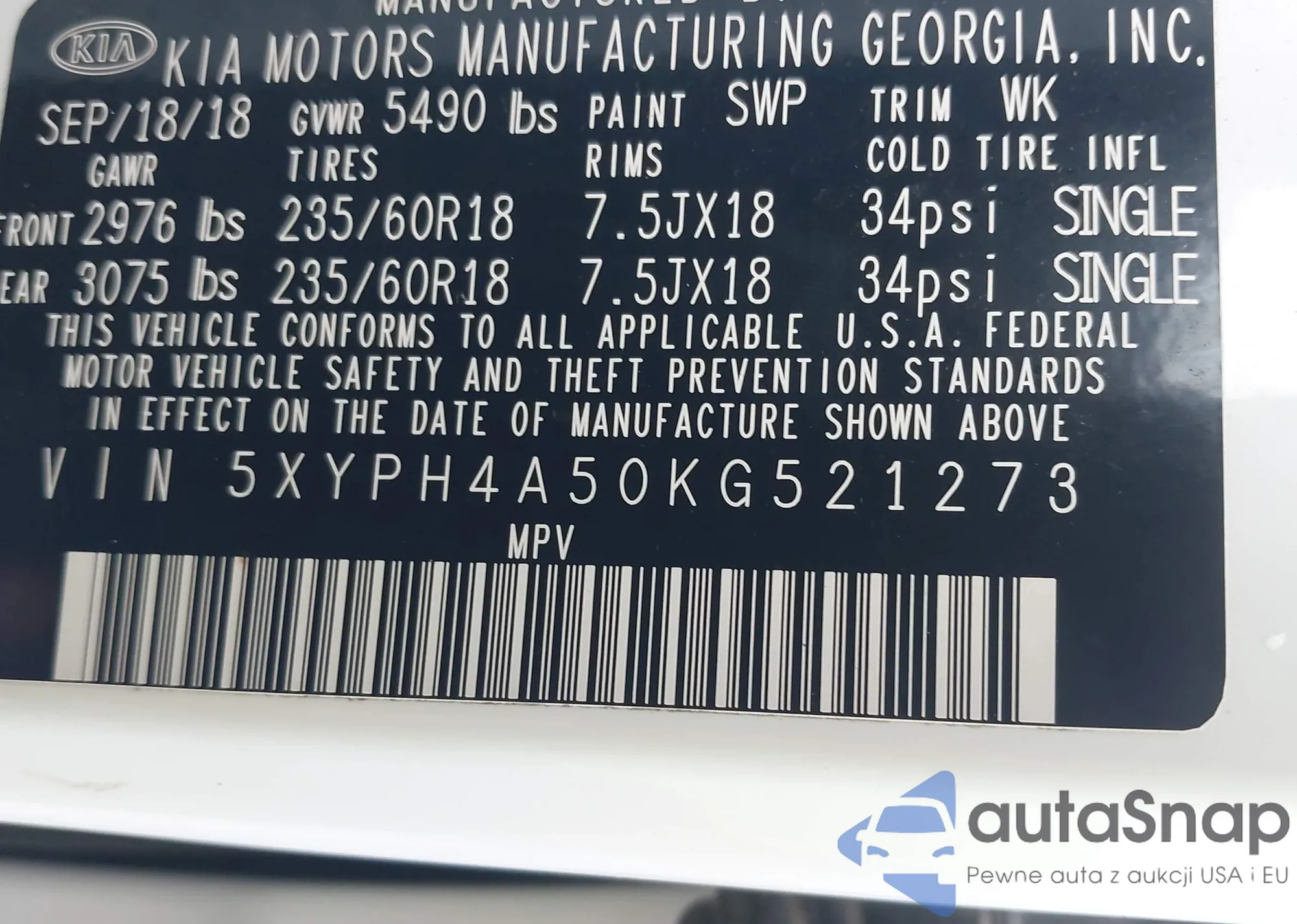 VIN: 5XYPH4A50KG521273