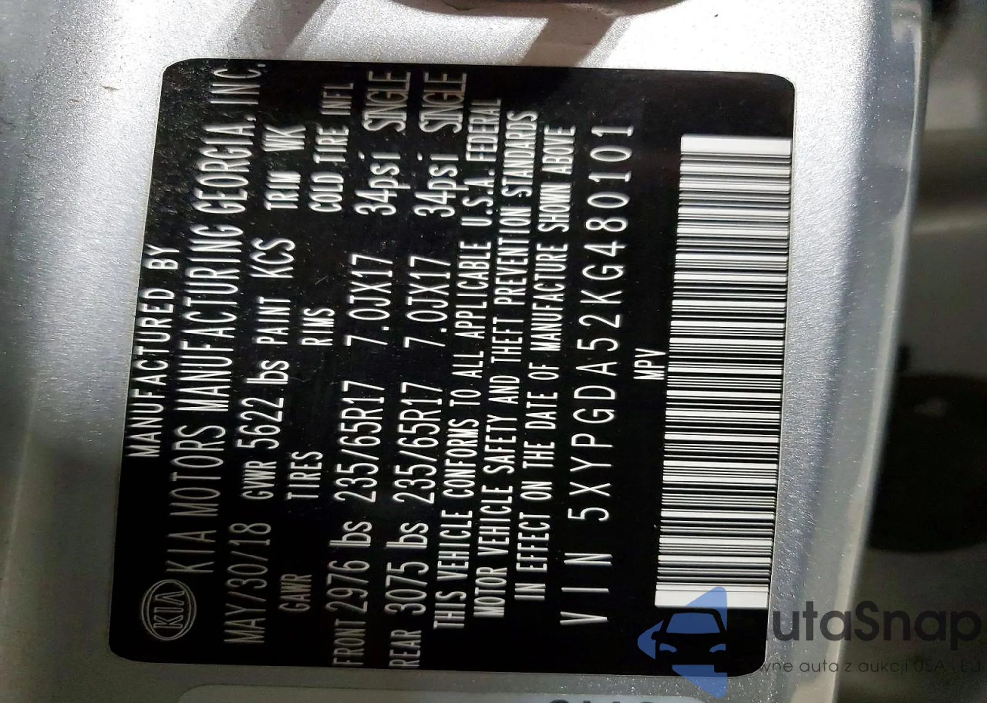 VIN: 5XYPGDA52KG480101