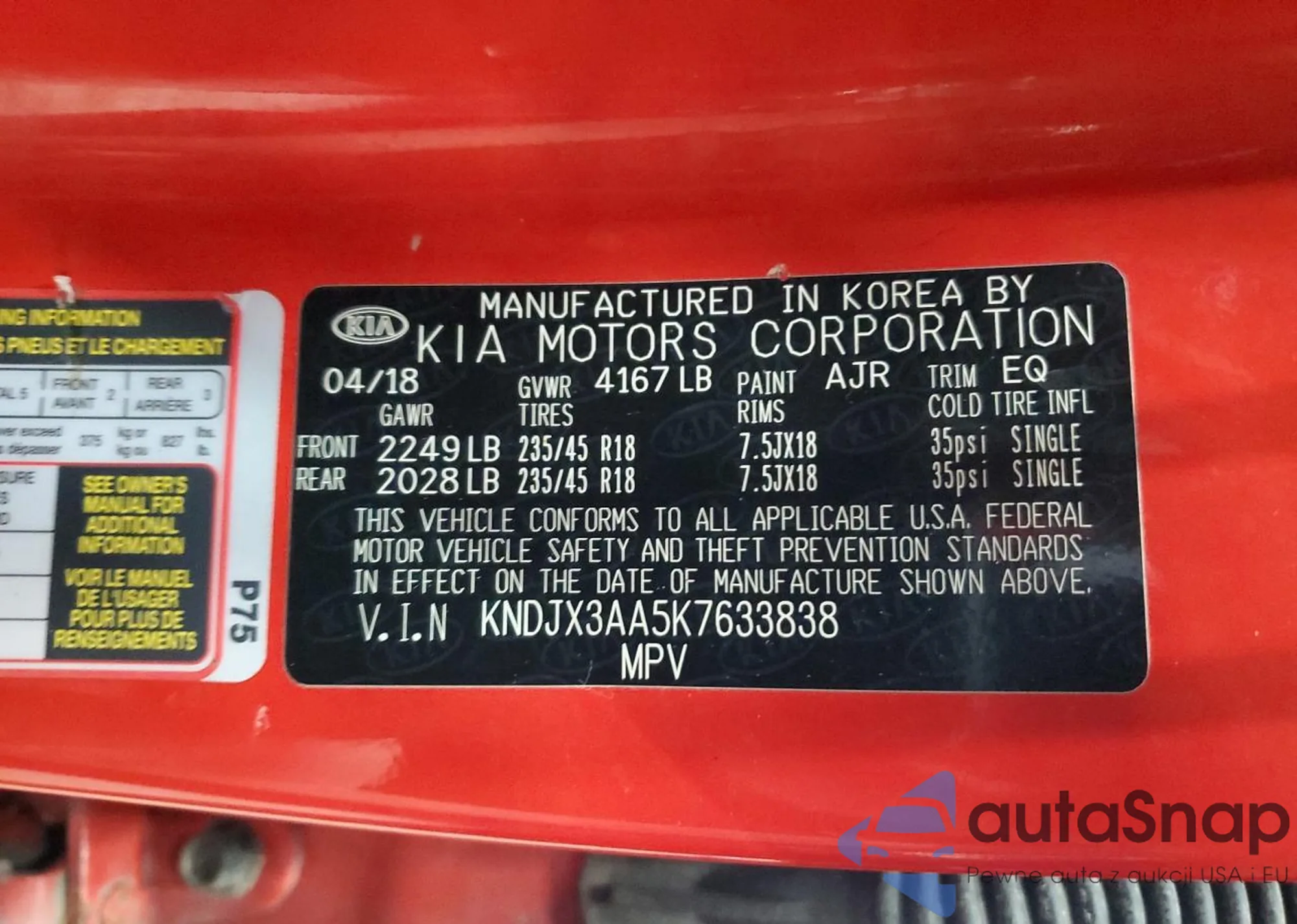 Samochód Kia Soul 2019 (VIN KNDJX3AA5K7633838) ma dokumenty uniemożliwiające rejestrację. Mogą pojawić się trudności przy eksporcie i rejestracji. Skontaktuj się z ekspertami AutaSnap w celu znalezienia alternatywy.