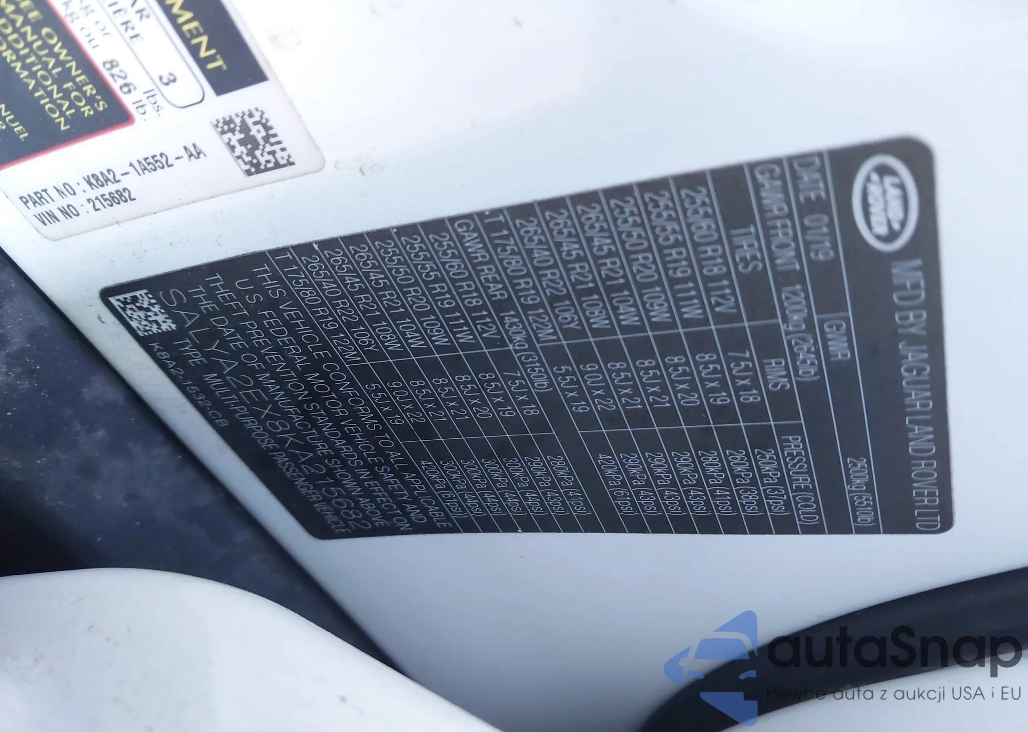 • VIN: SALYA2EX8KA215682