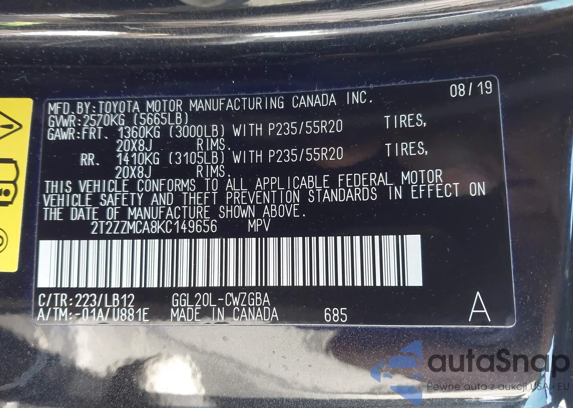VIN: 2T2ZZMCA8KC149656